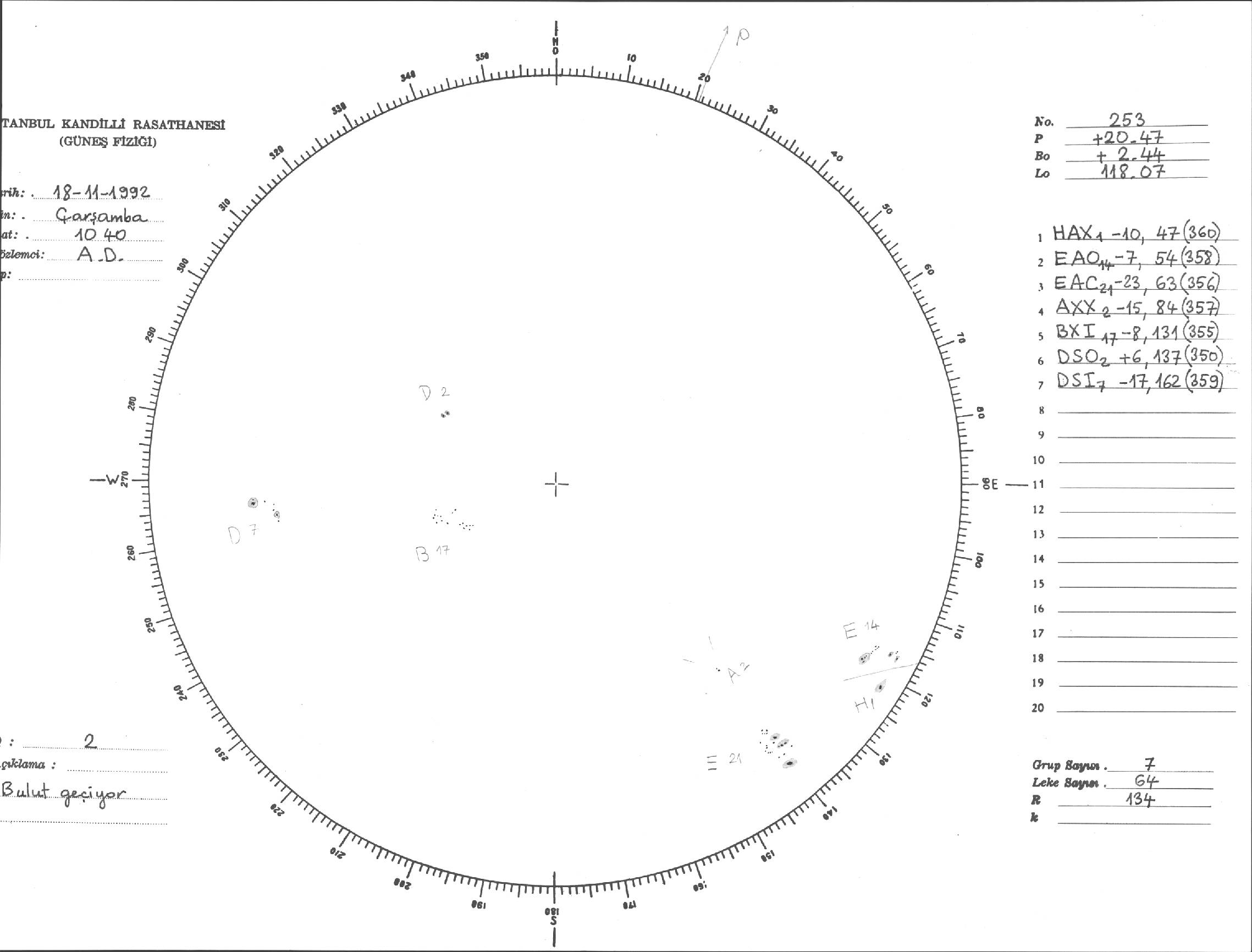 Güneş Lekesi Çizimi - 18.11.1992