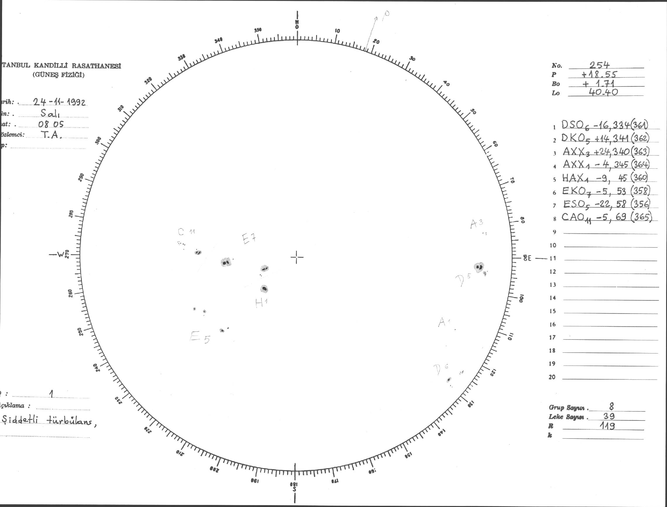 Güneş Lekesi Çizimi - 24.11.1992