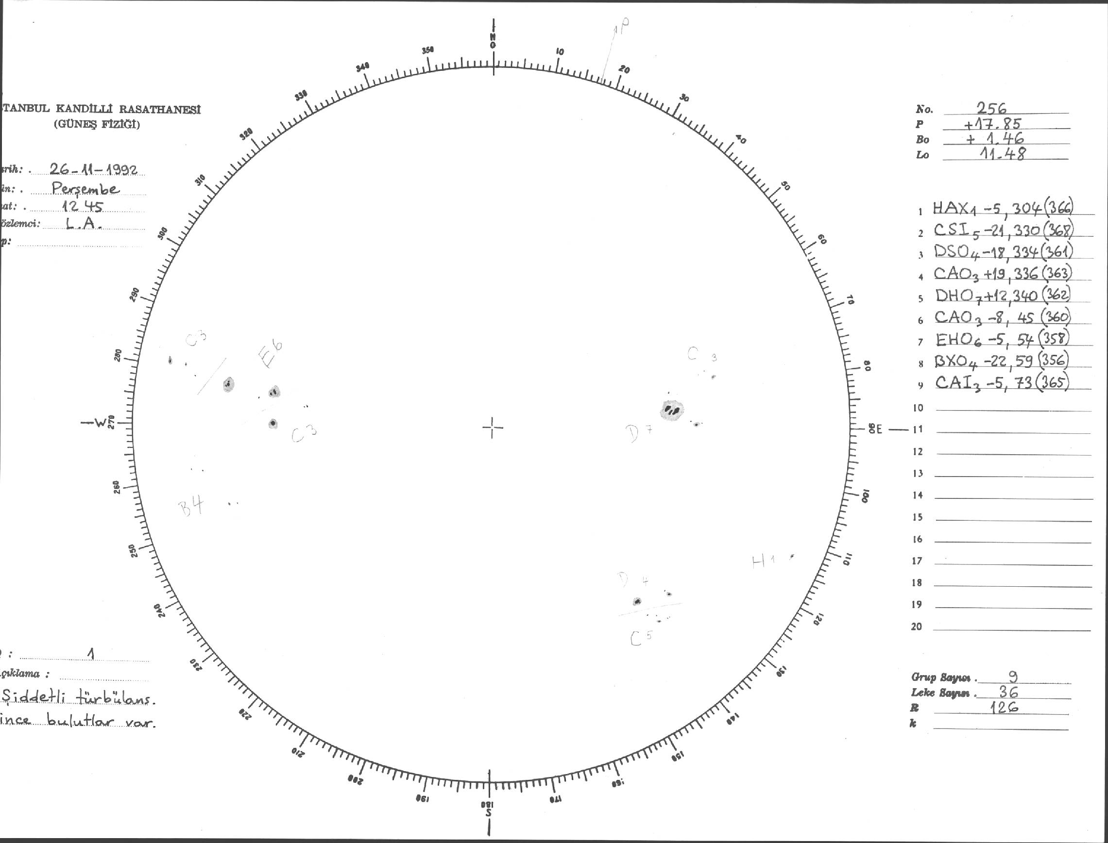 Güneş Lekesi Çizimi - 26.11.1992