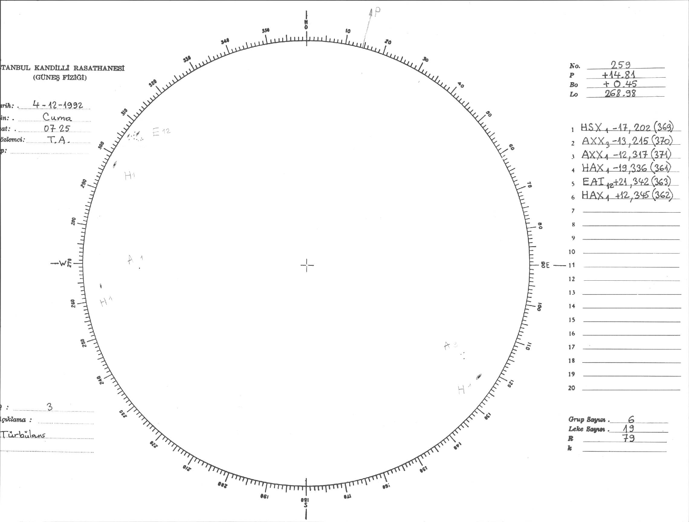 Güneş Lekesi Çizimi - 04.12.1992