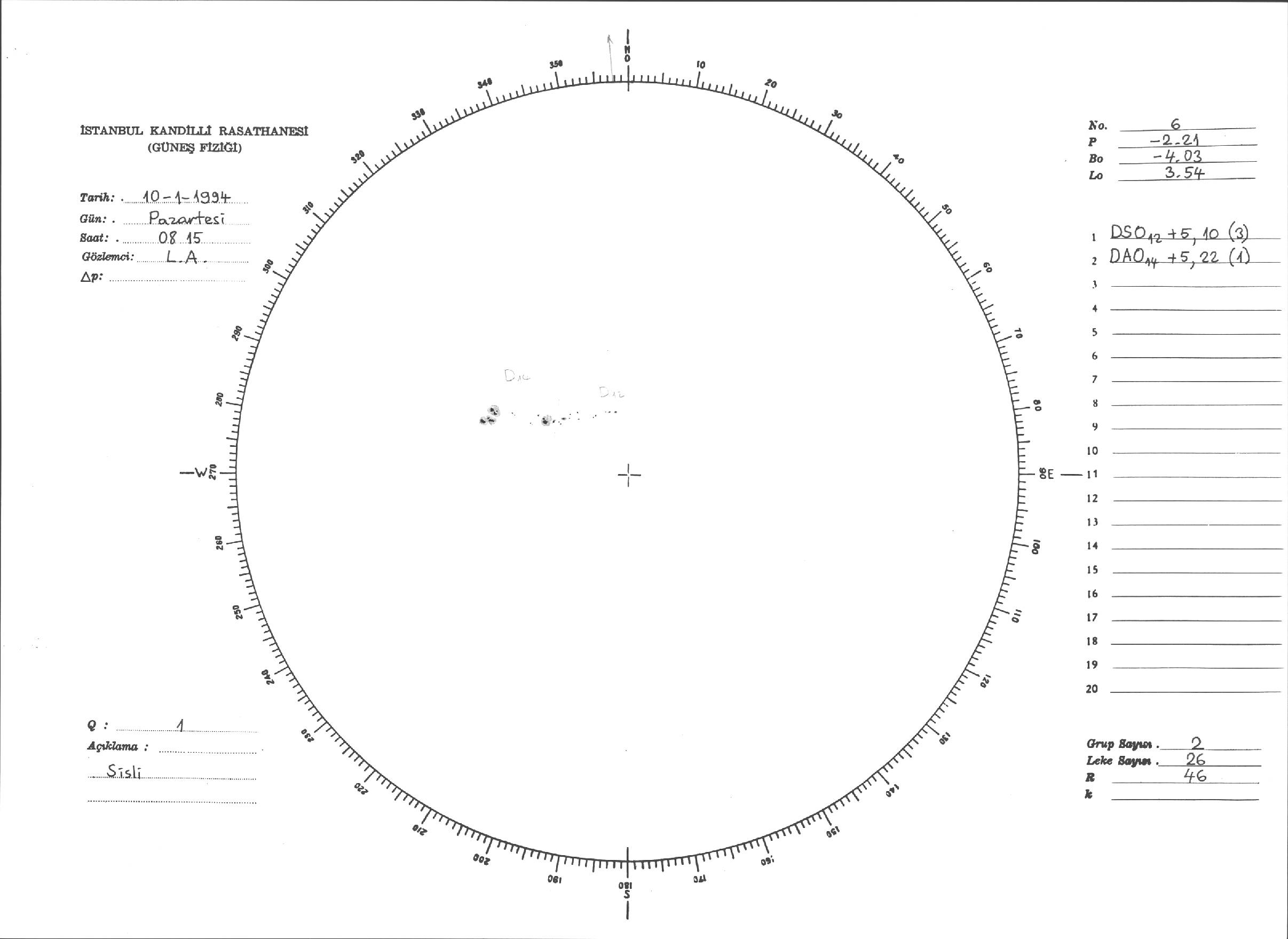 Güneş Lekesi Çizimi - 10.01.1994