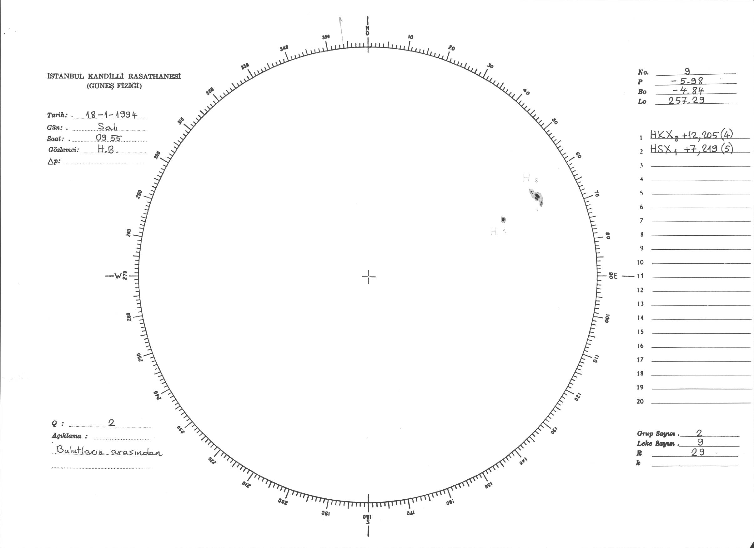 Güneş Lekesi Çizimi - 18.01.1994