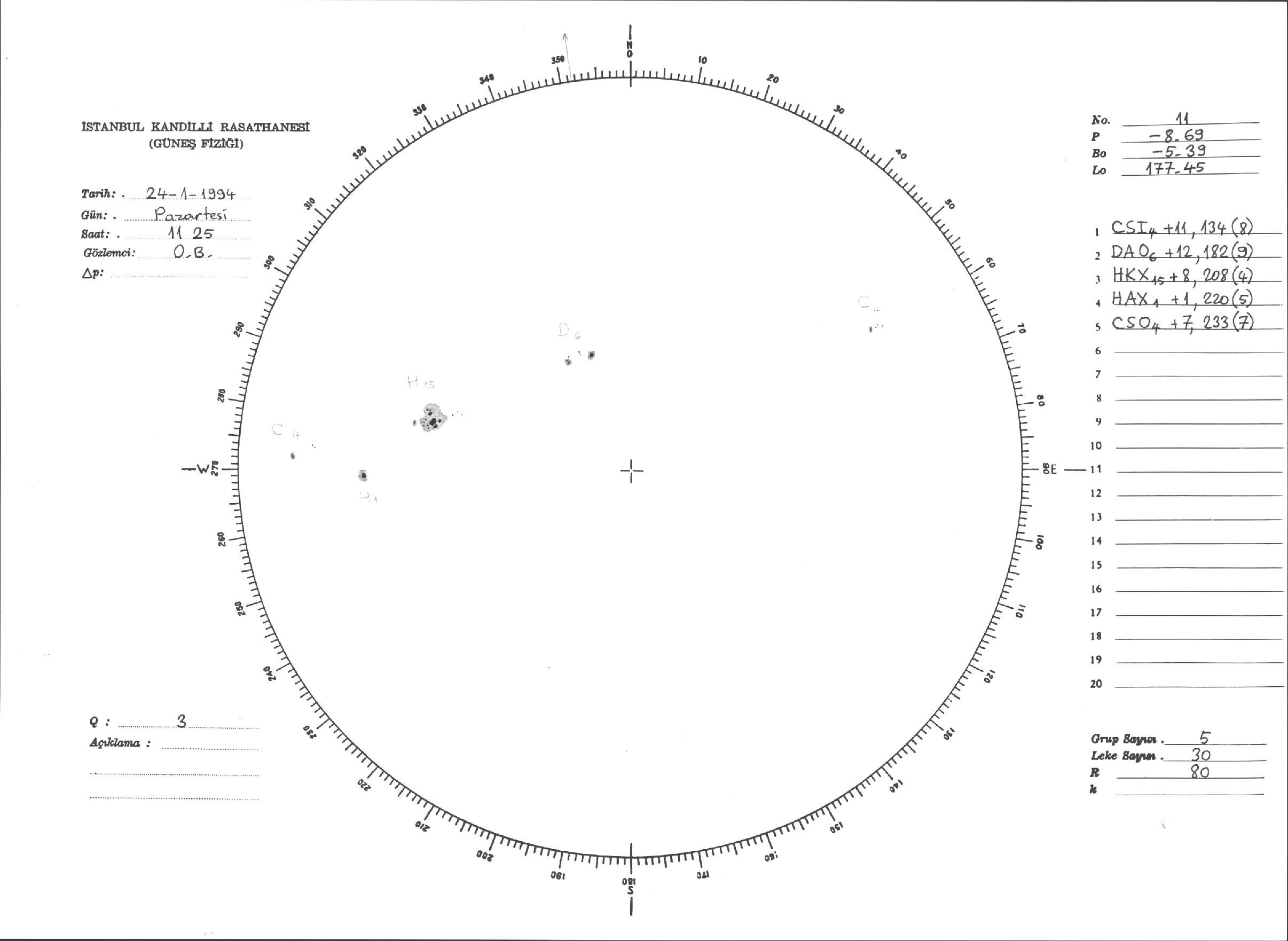 Güneş Lekesi Çizimi - 24.01.1994