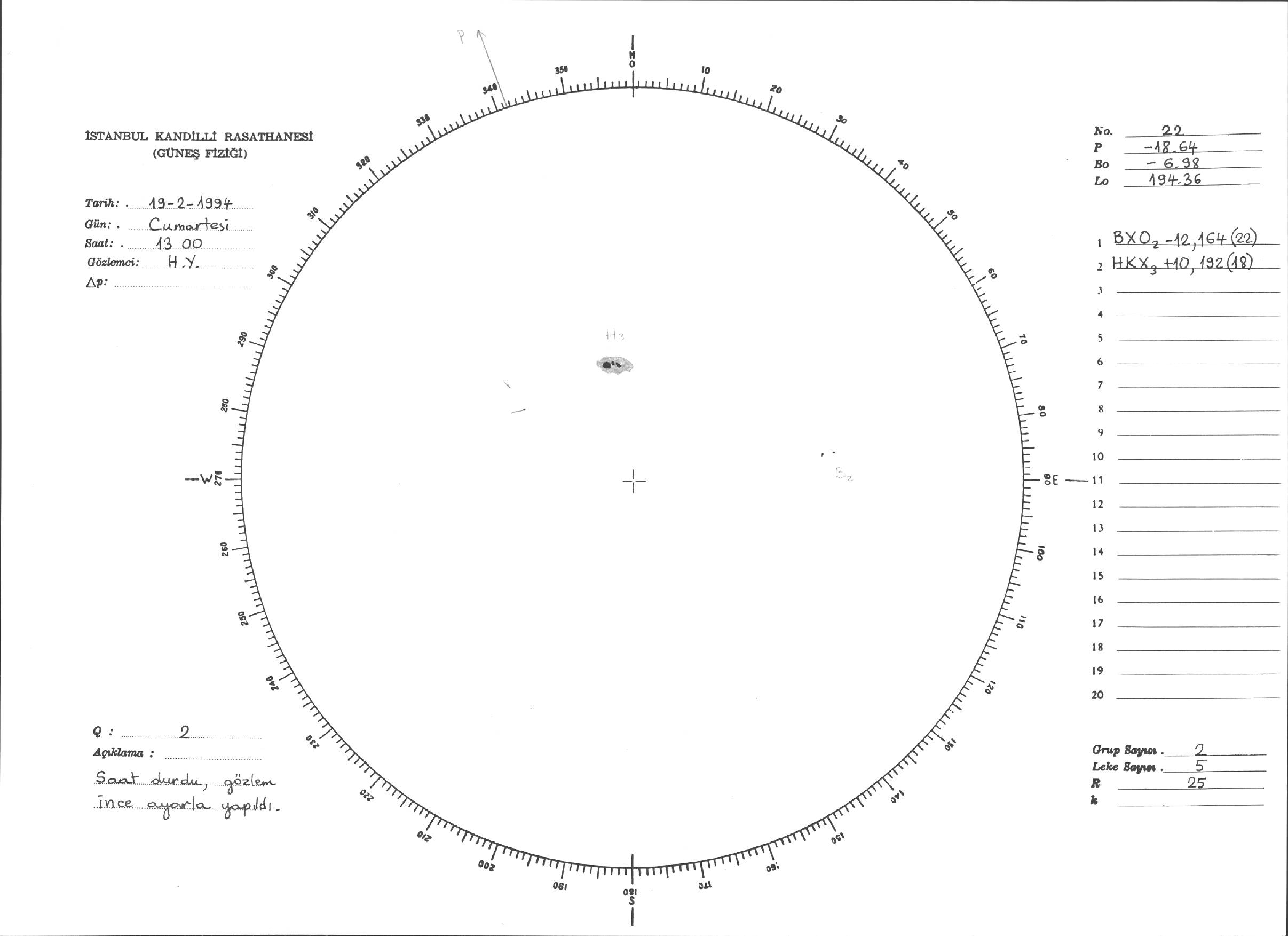 Güneş Lekesi Çizimi - 19.02.1994