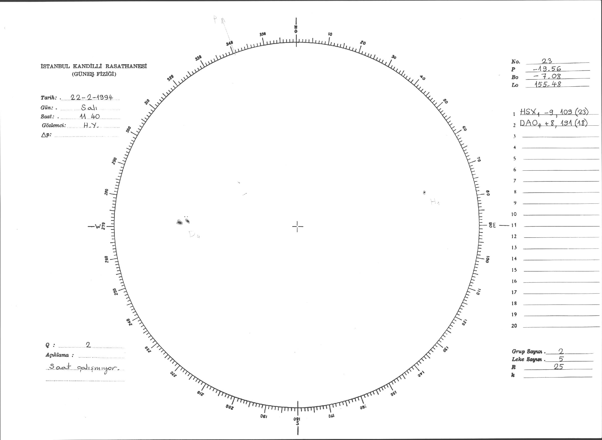 Güneş Lekesi Çizimi - 22.02.1994