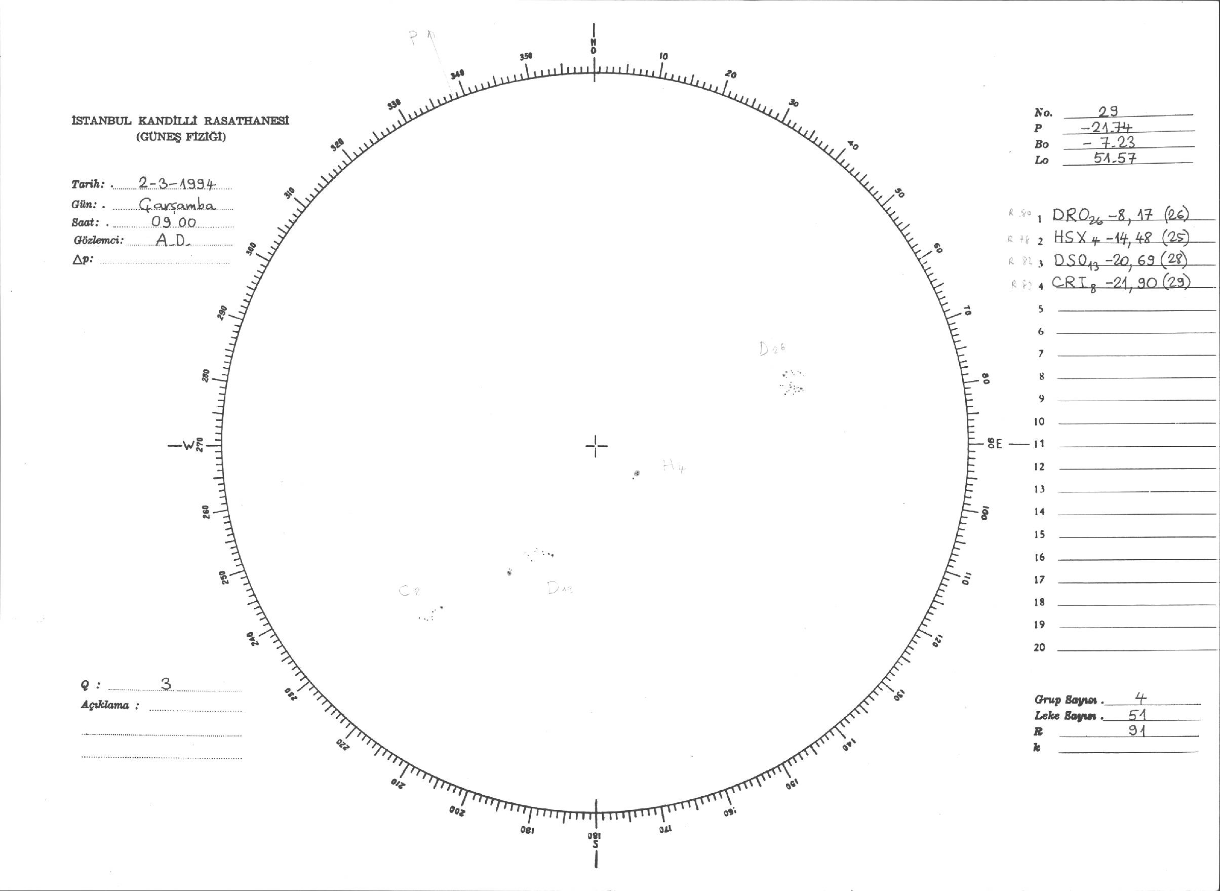 Güneş Lekesi Çizimi - 02.03.1994