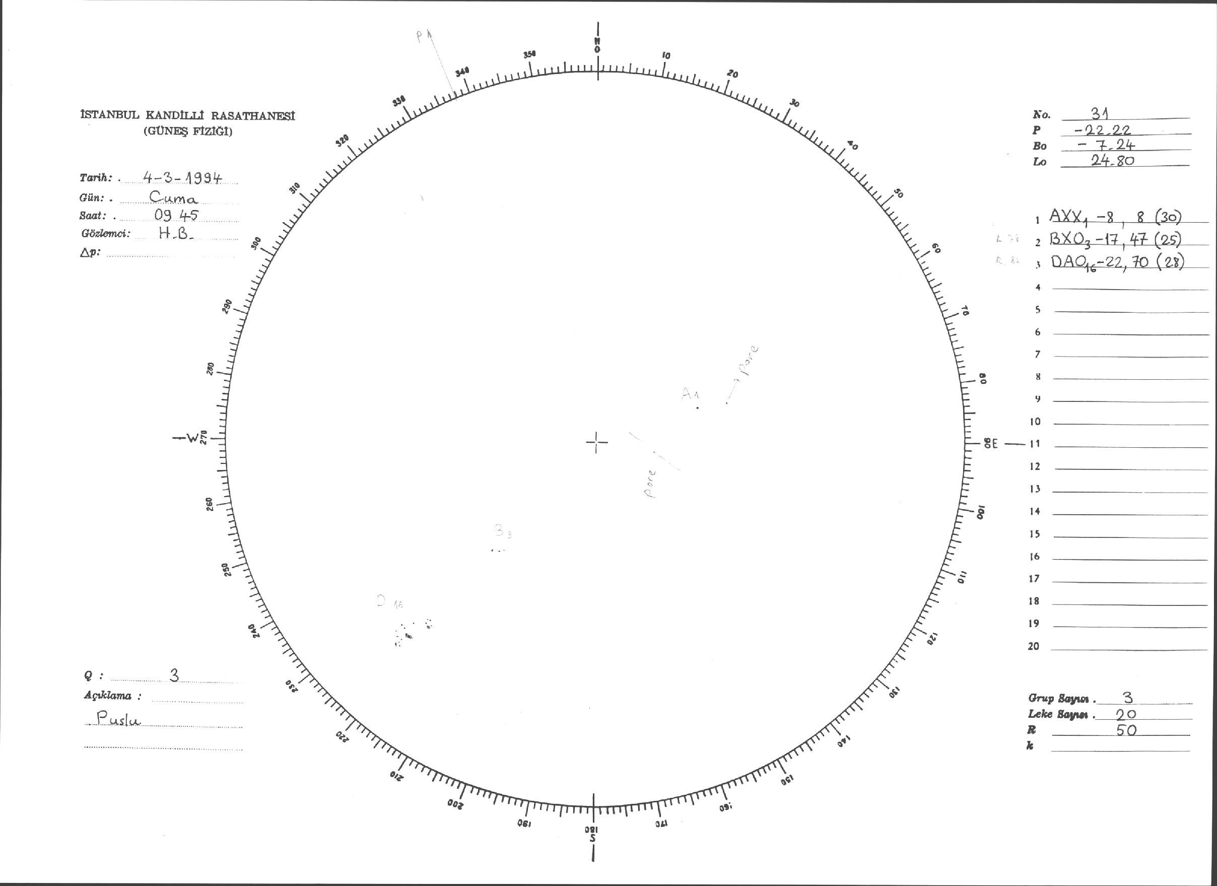 Güneş Lekesi Çizimi - 04.03.1994