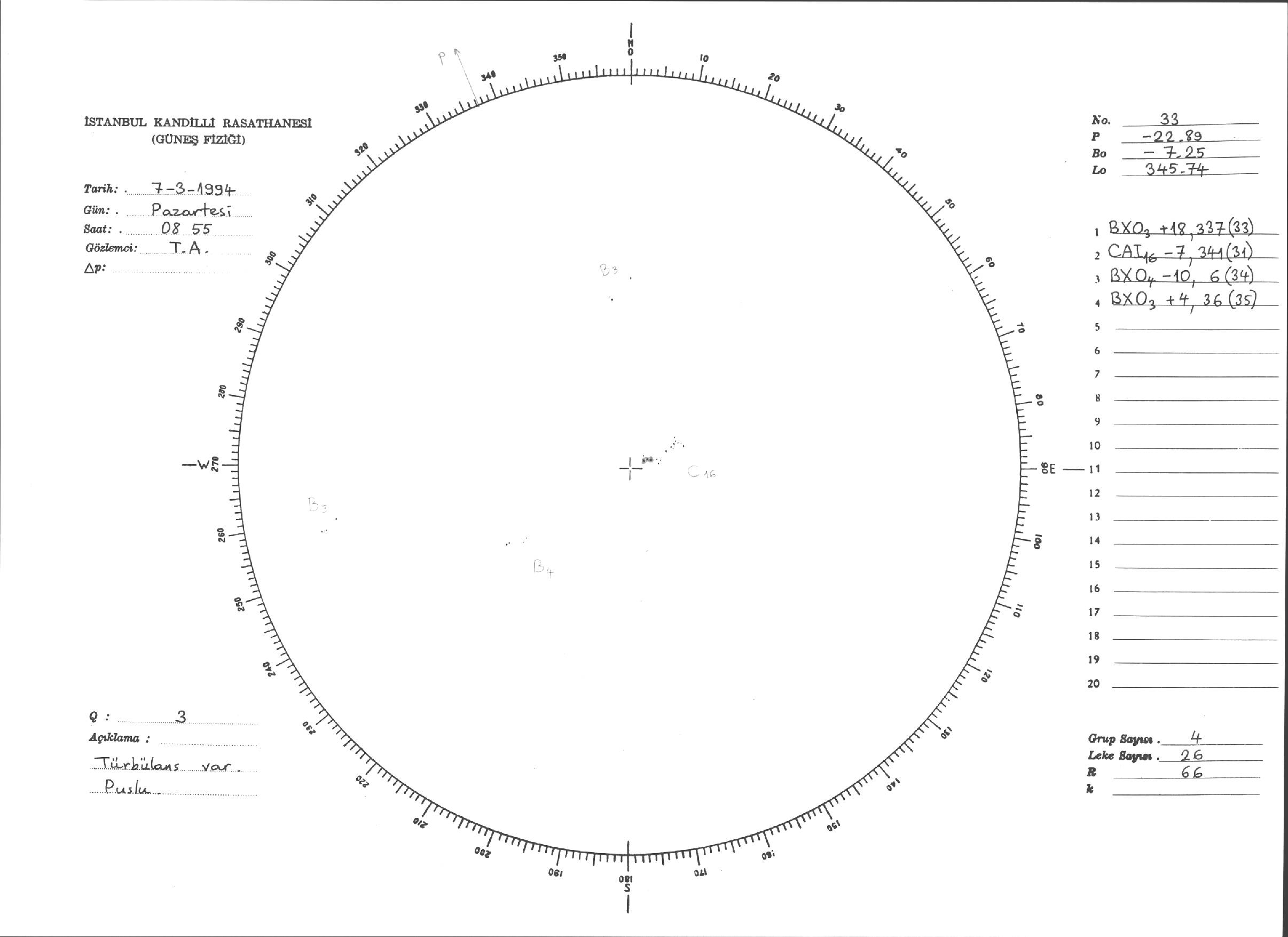 Güneş Lekesi Çizimi - 07.03.1994