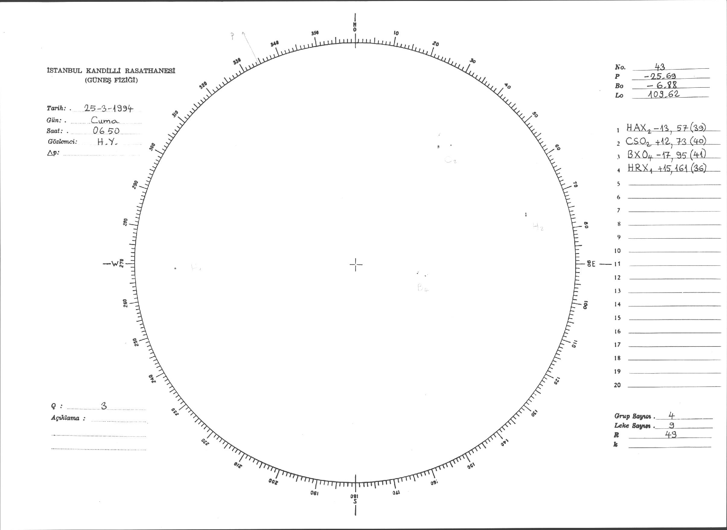 Güneş Lekesi Çizimi - 25.03.1994