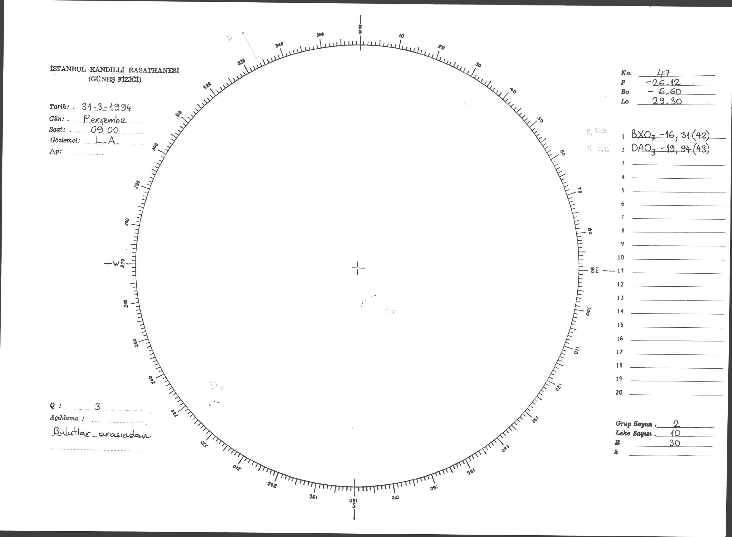 Güneş Lekesi Çizimi - 31.03.1994