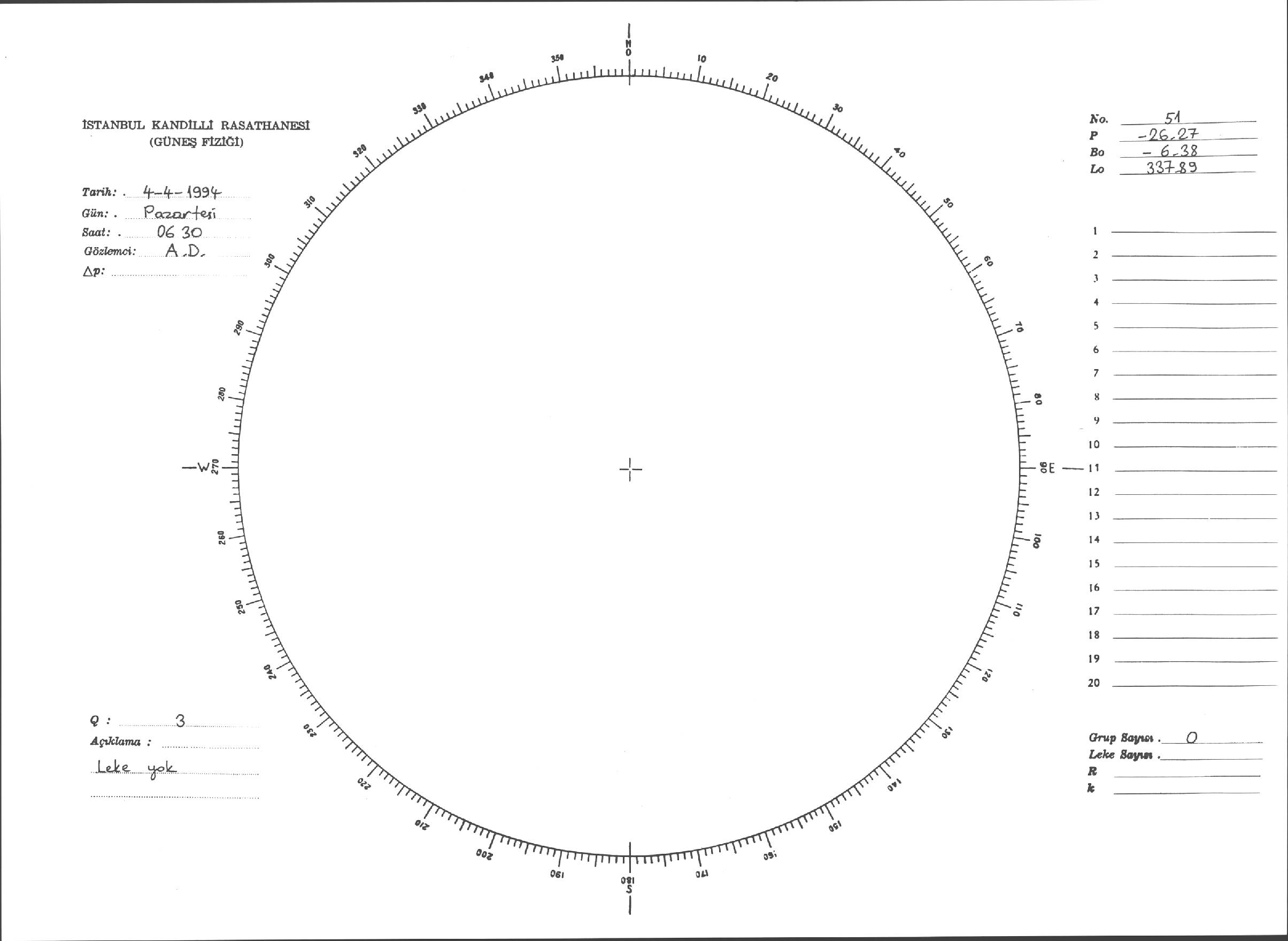 Güneş Lekesi Çizimi - 04.04.1994