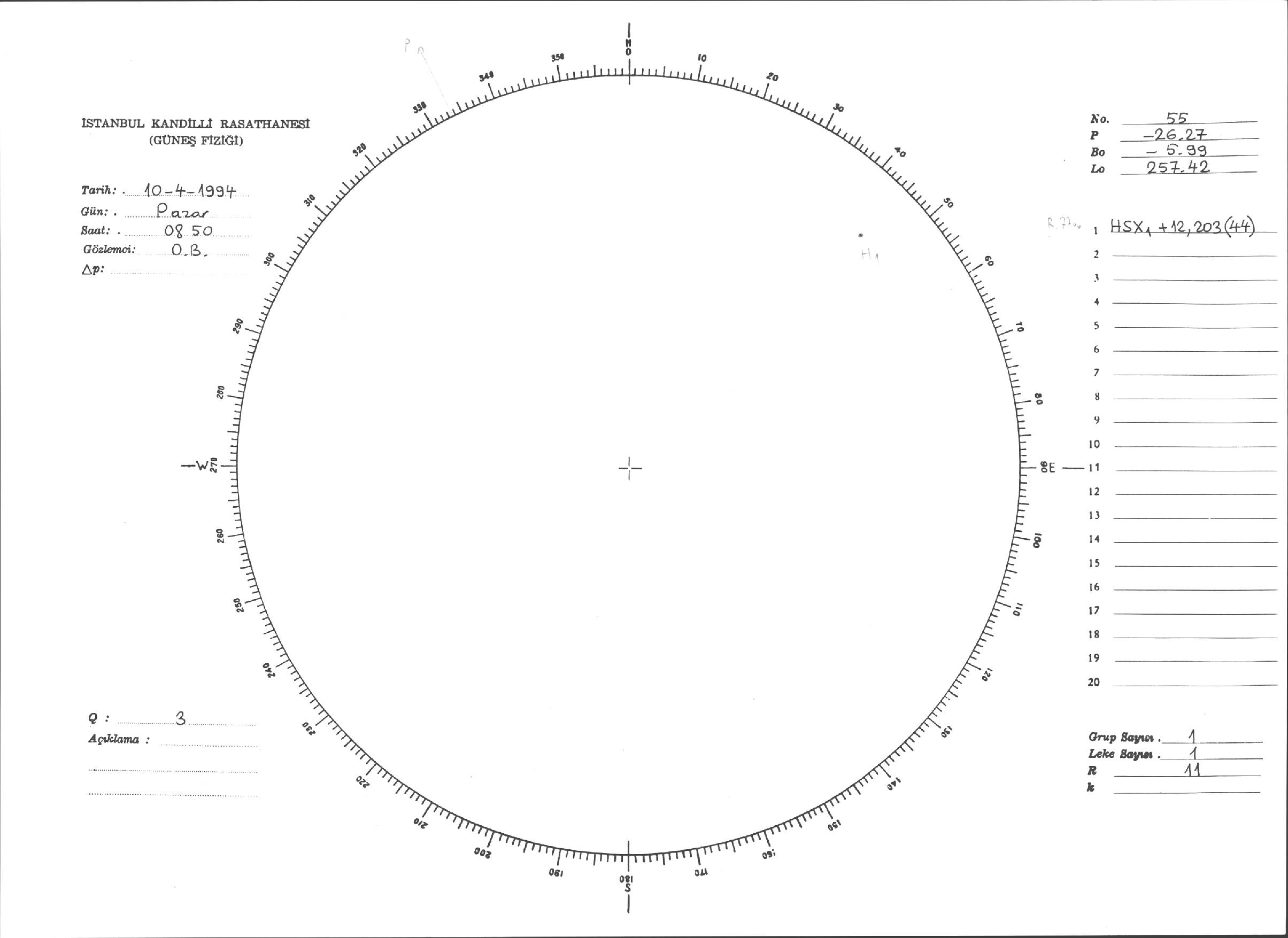 Güneş Lekesi Çizimi - 10.04.1994