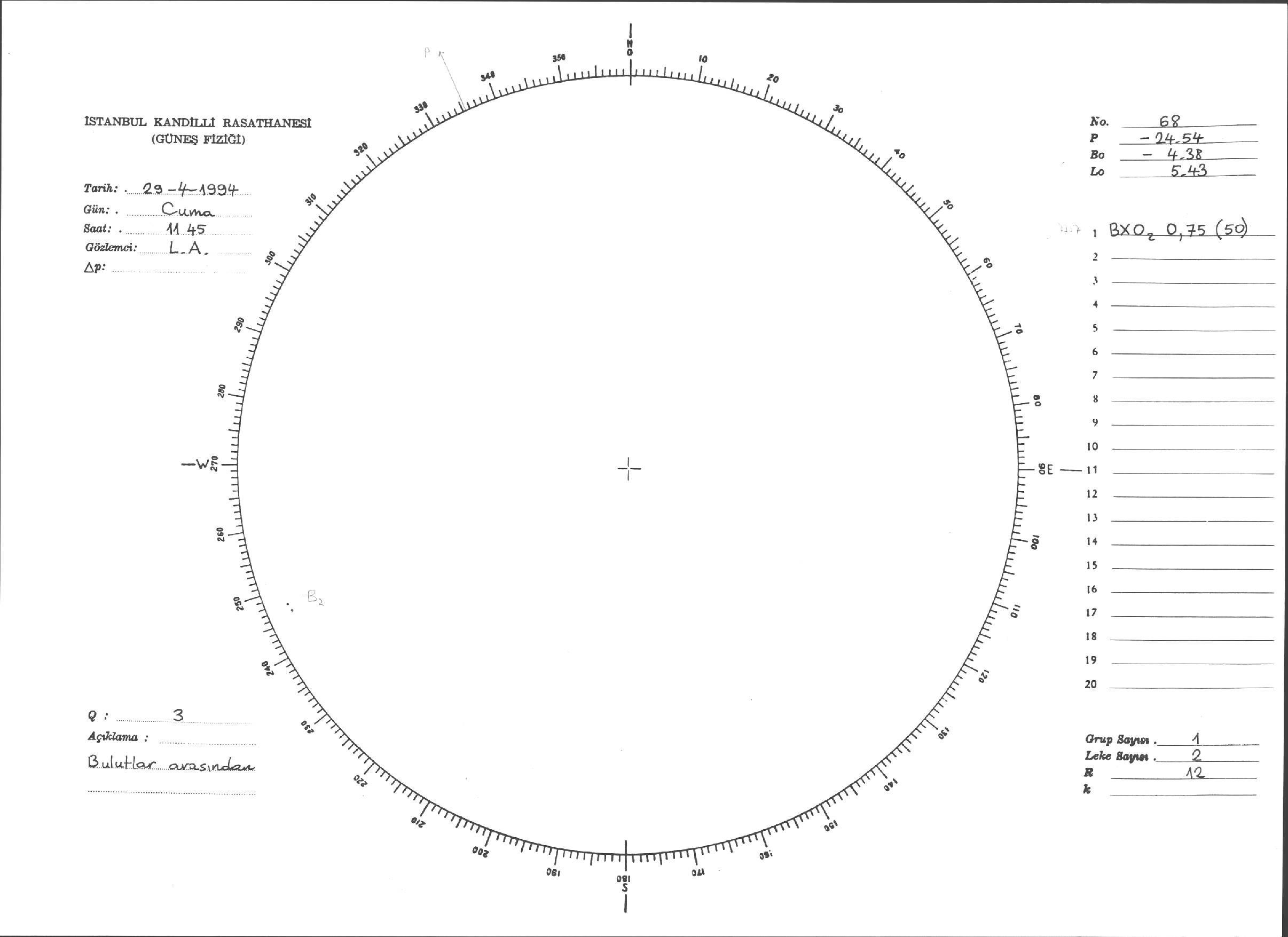 Güneş Lekesi Çizimi - 29.04.1994