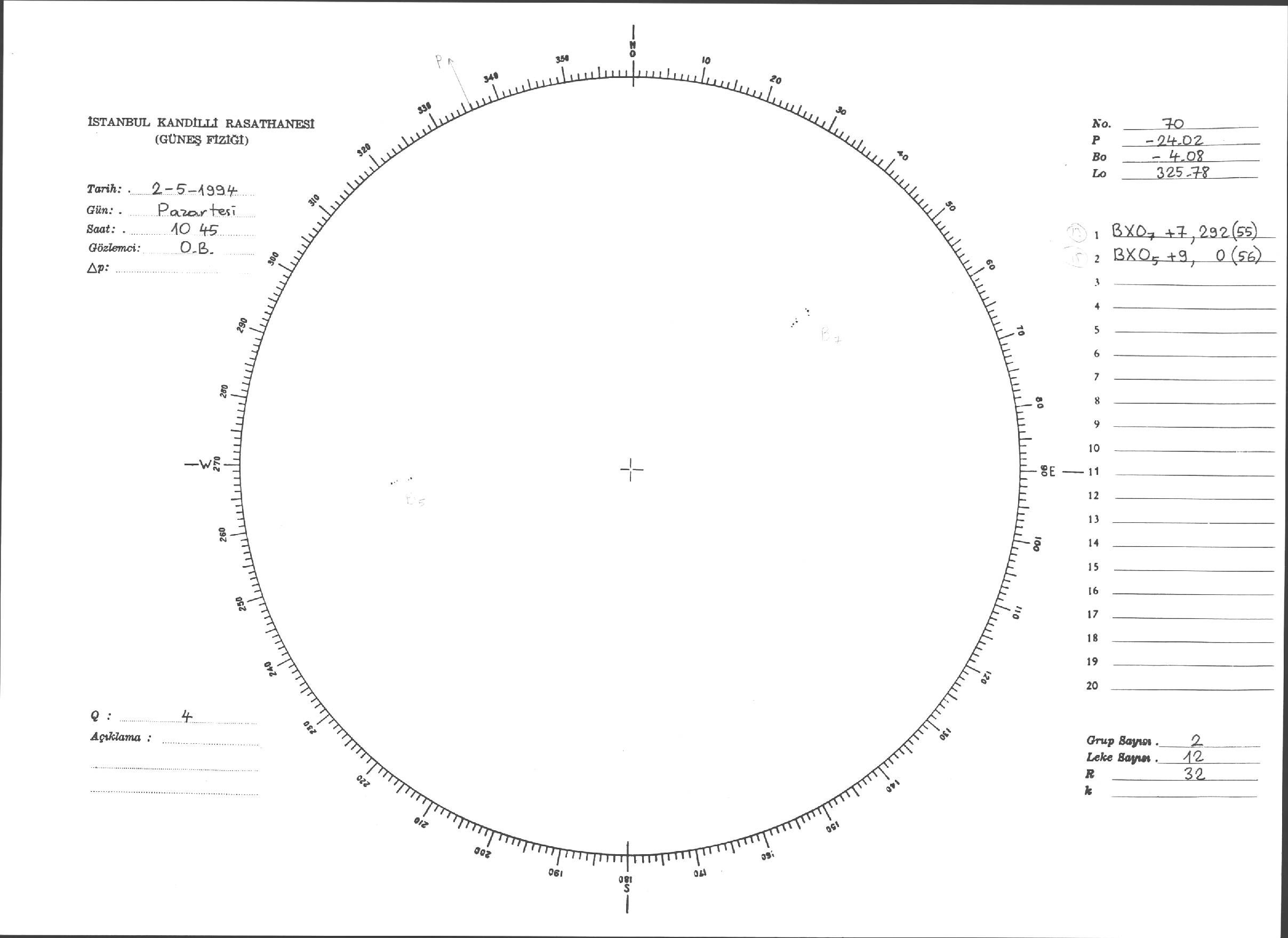 Güneş Lekesi Çizimi - 02.05.1994