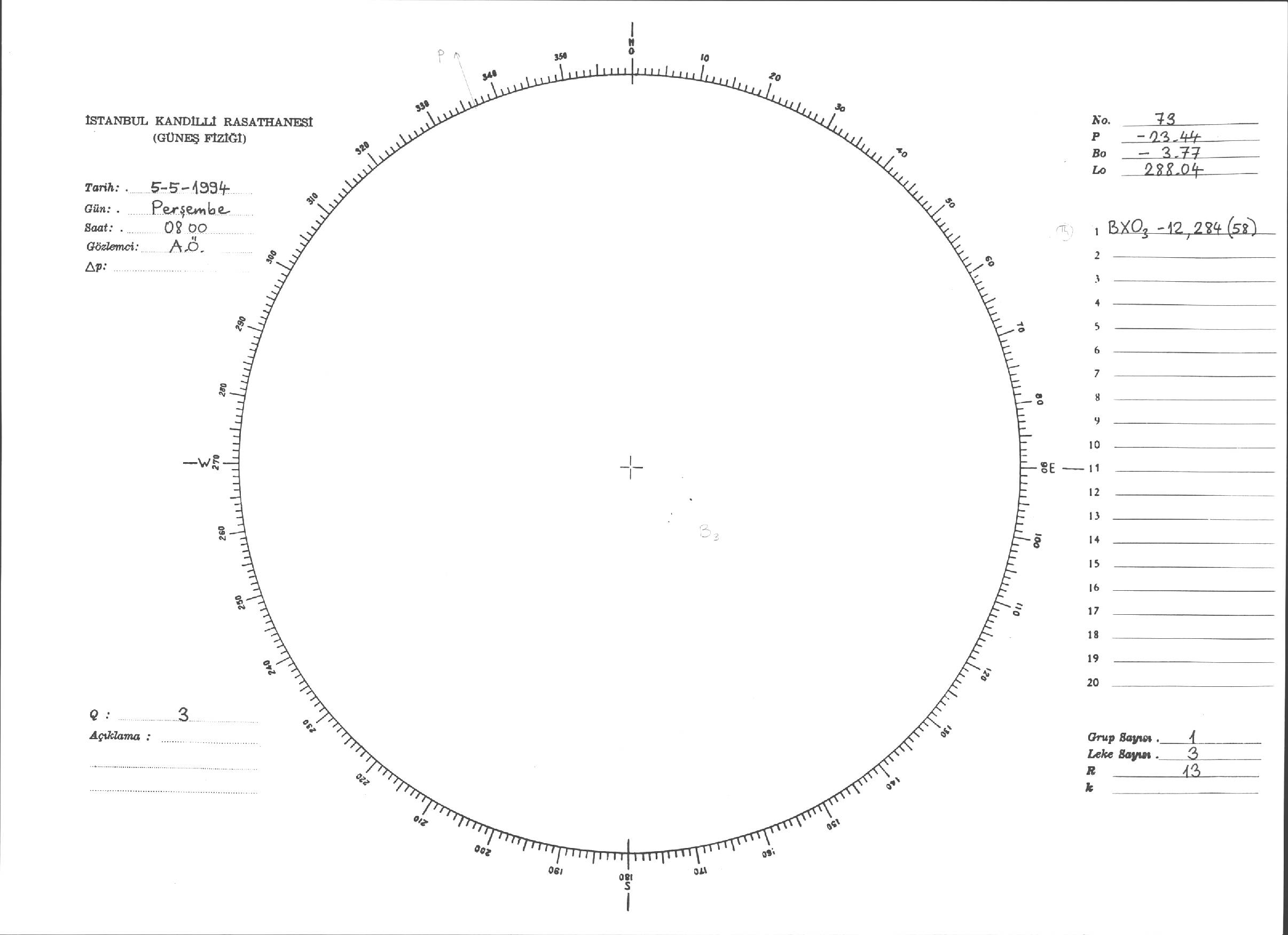 Güneş Lekesi Çizimi - 05.05.1994