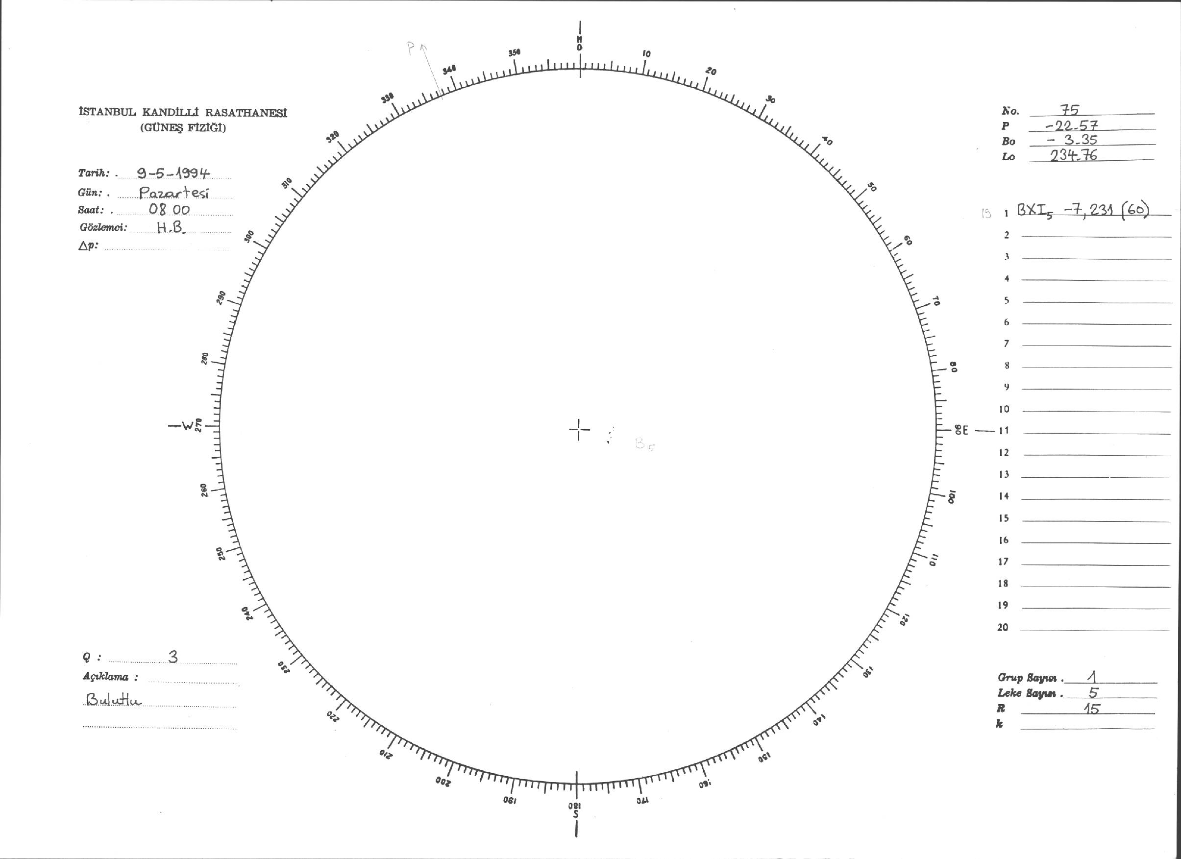 Güneş Lekesi Çizimi - 09.05.1994
