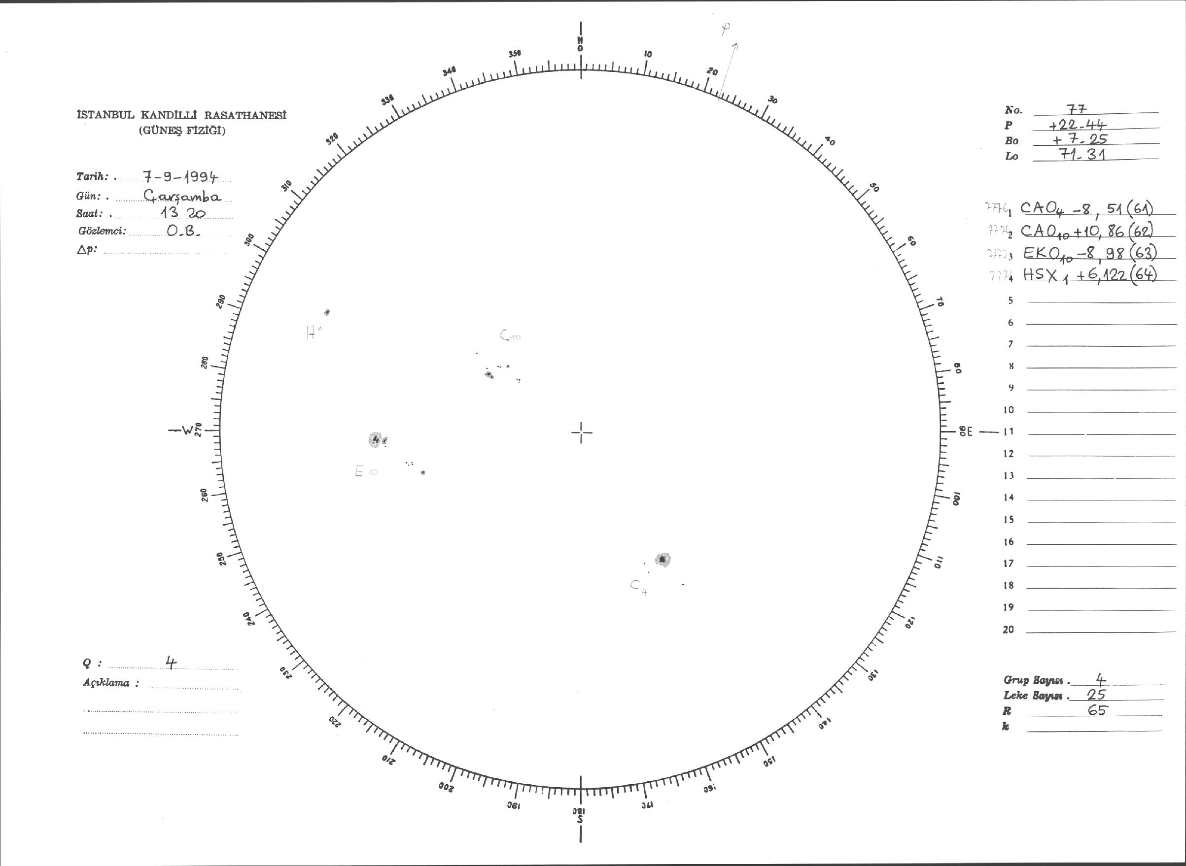 Güneş Lekesi Çizimi - 07.09.1994