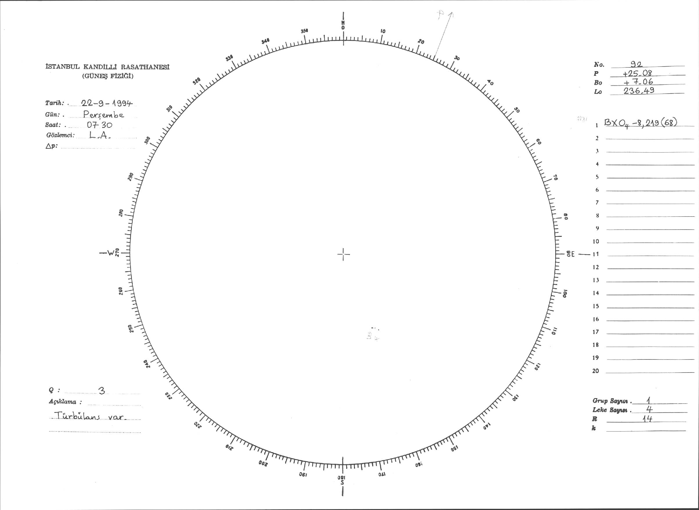 Güneş Lekesi Çizimi - 22.09.1994