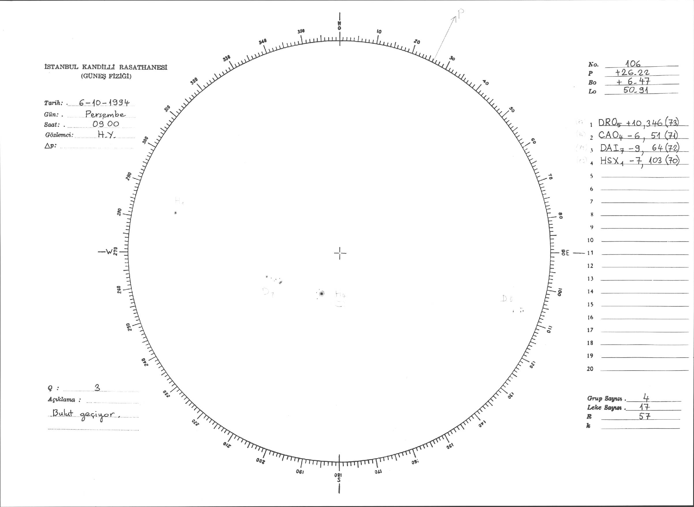 Güneş Lekesi Çizimi - 06.10.1994