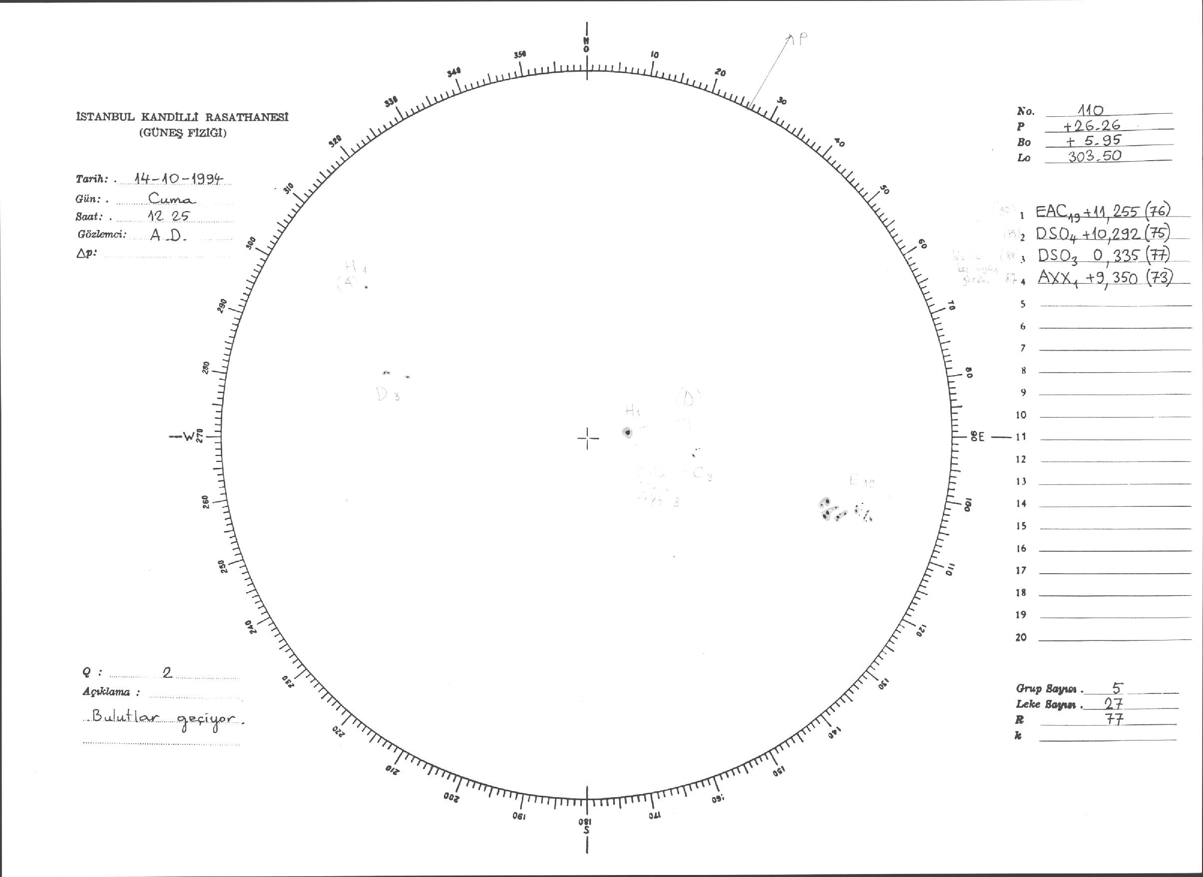 Güneş Lekesi Çizimi - 14.10.1994