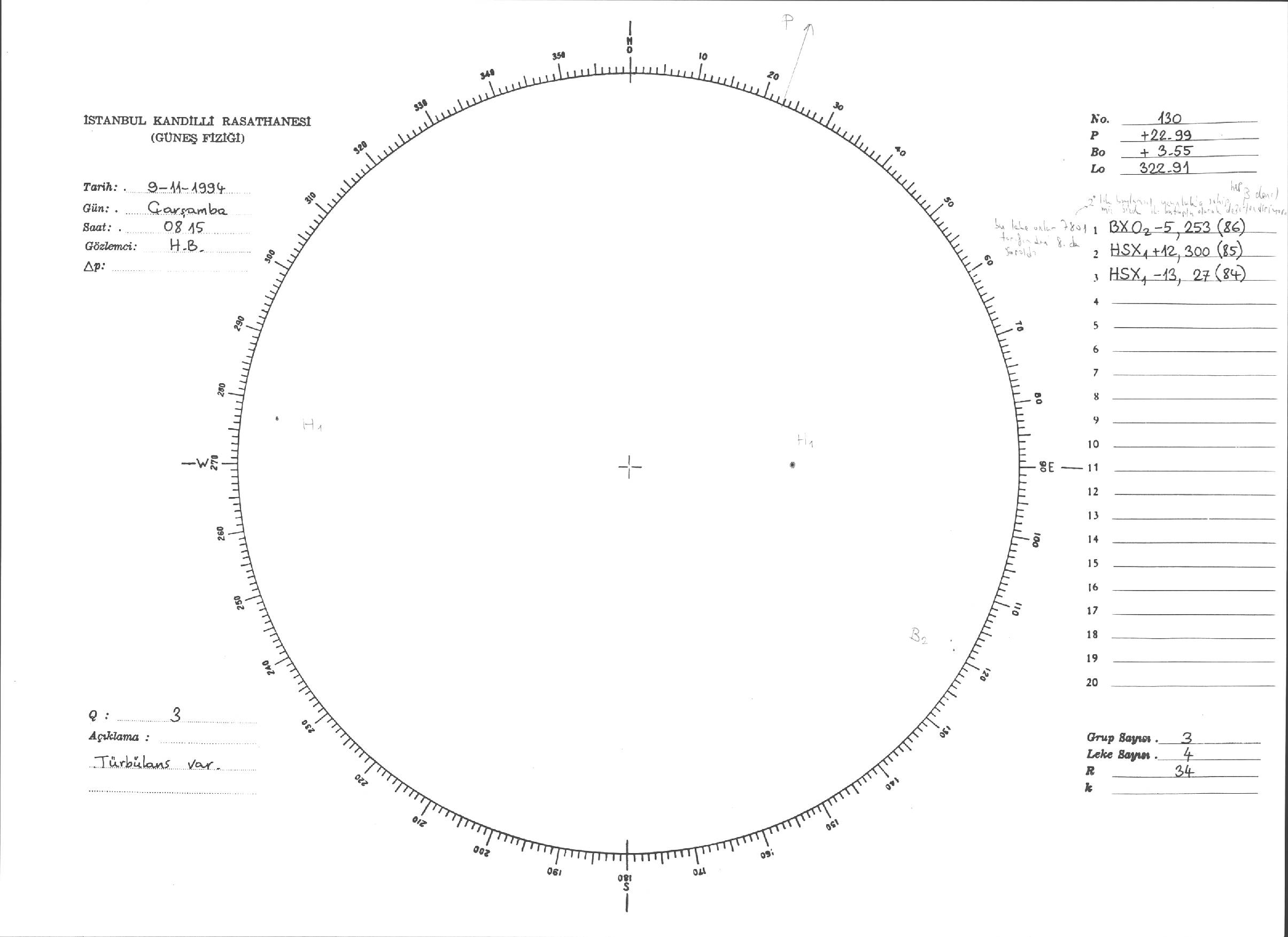 Güneş Lekesi Çizimi - 09.11.1994