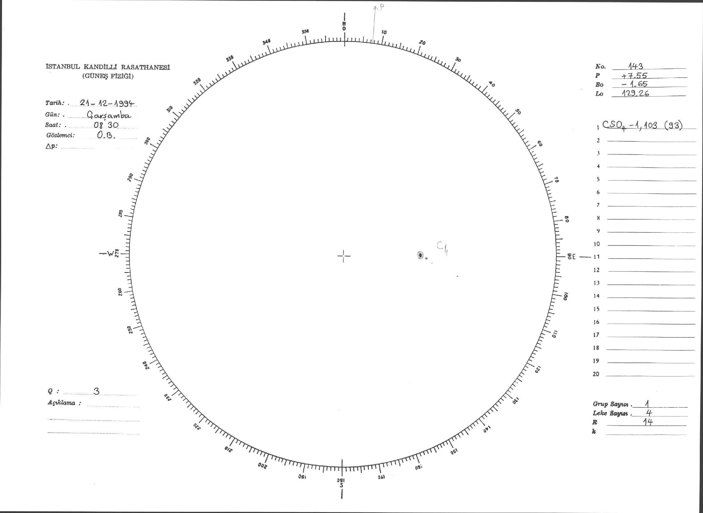 Güneş Lekesi Çizimi - 21.12.1994