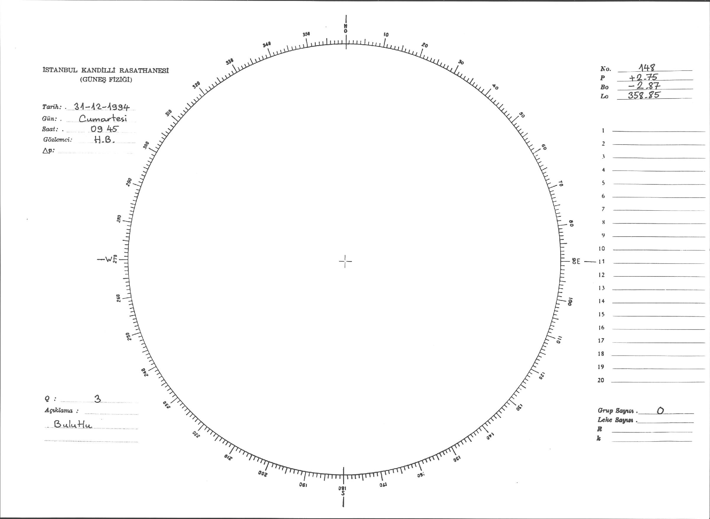 Güneş Lekesi Çizimi - 31.12.1994