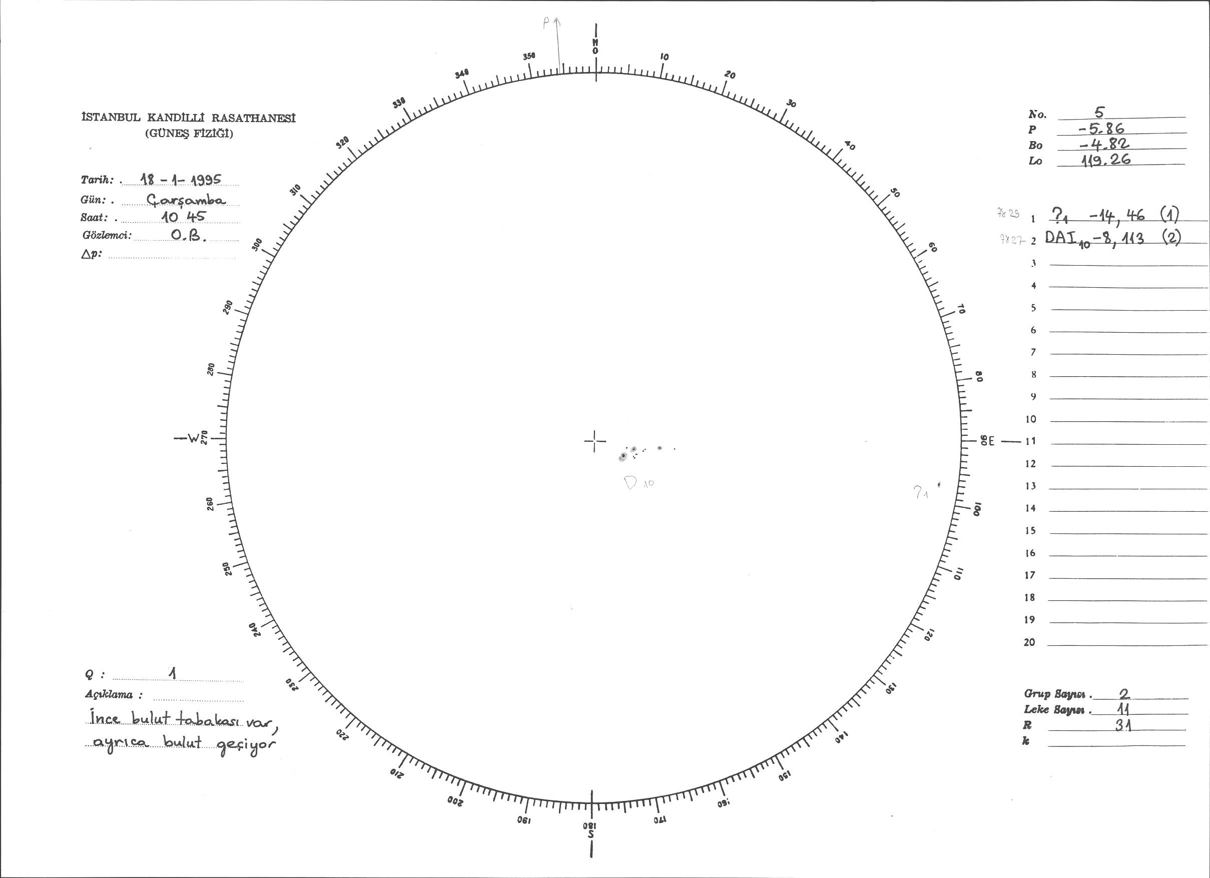 Güneş Lekesi Çizimi - 18.01.1995