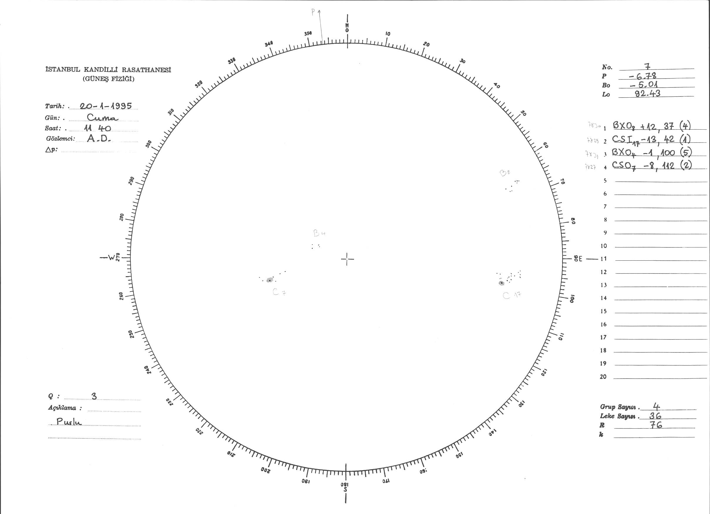 Güneş Lekesi Çizimi - 20.01.1995