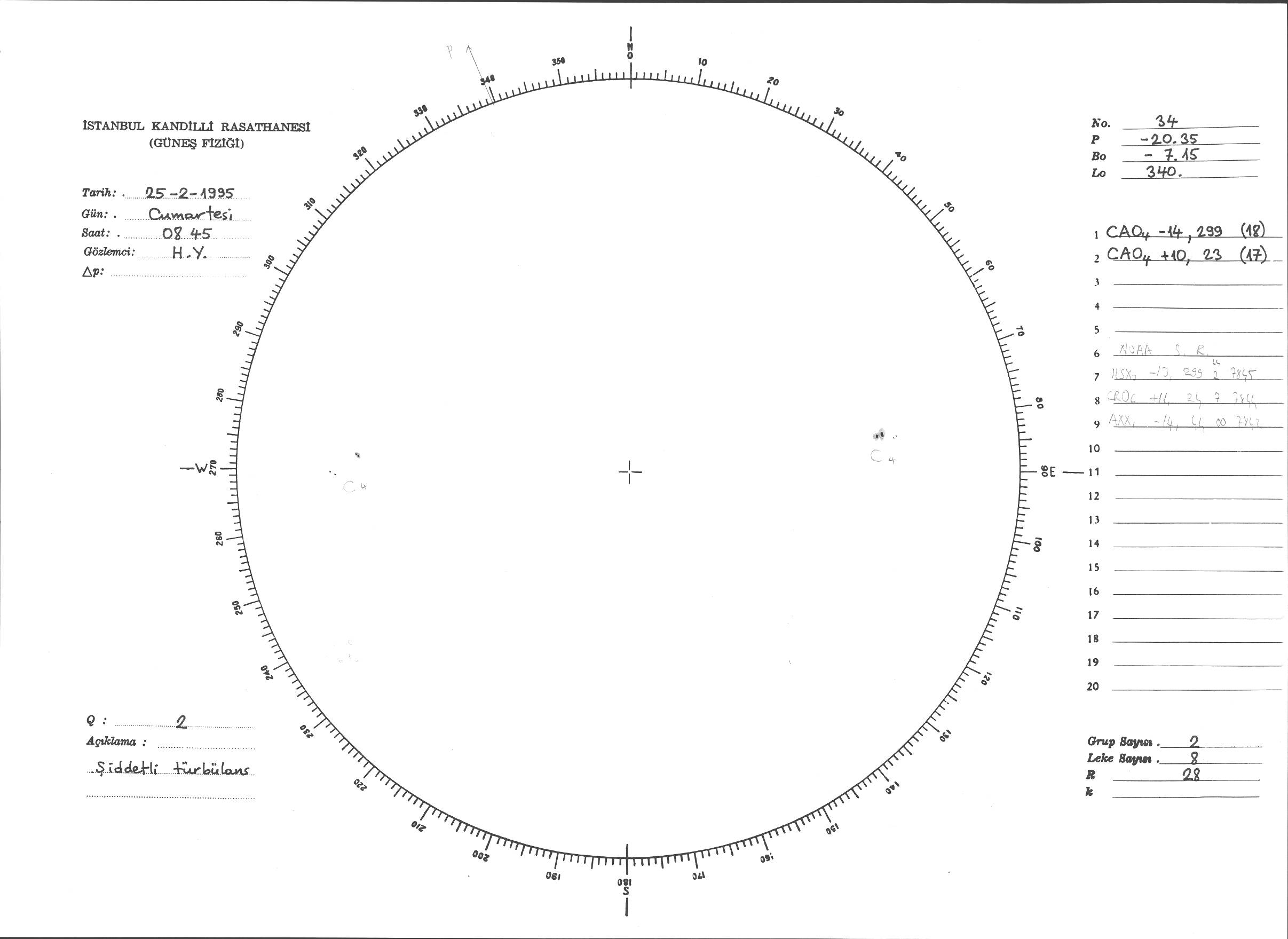 Güneş Lekesi Çizimi - 25.02.1995