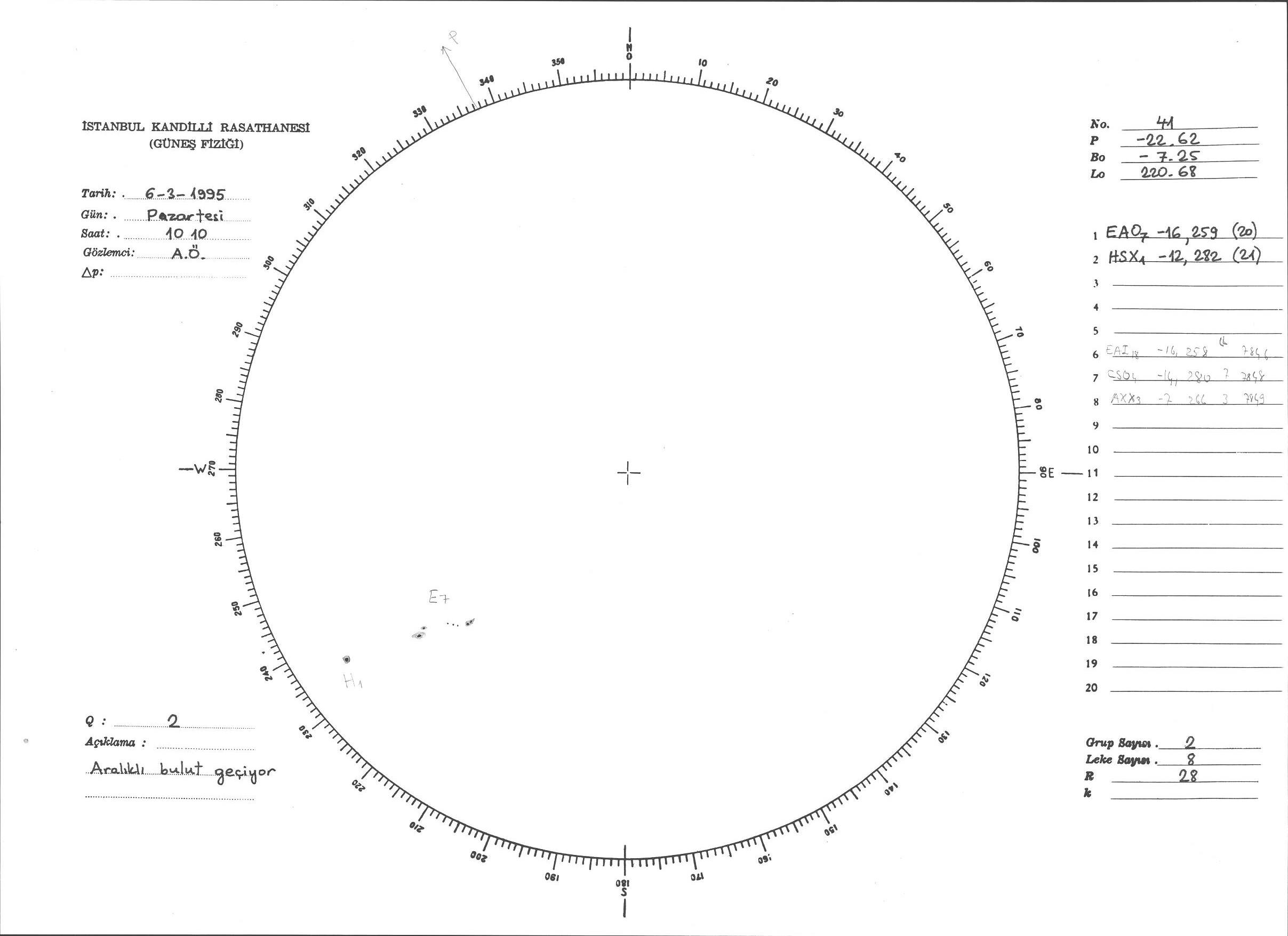 Güneş Lekesi Çizimi - 06.03.1995