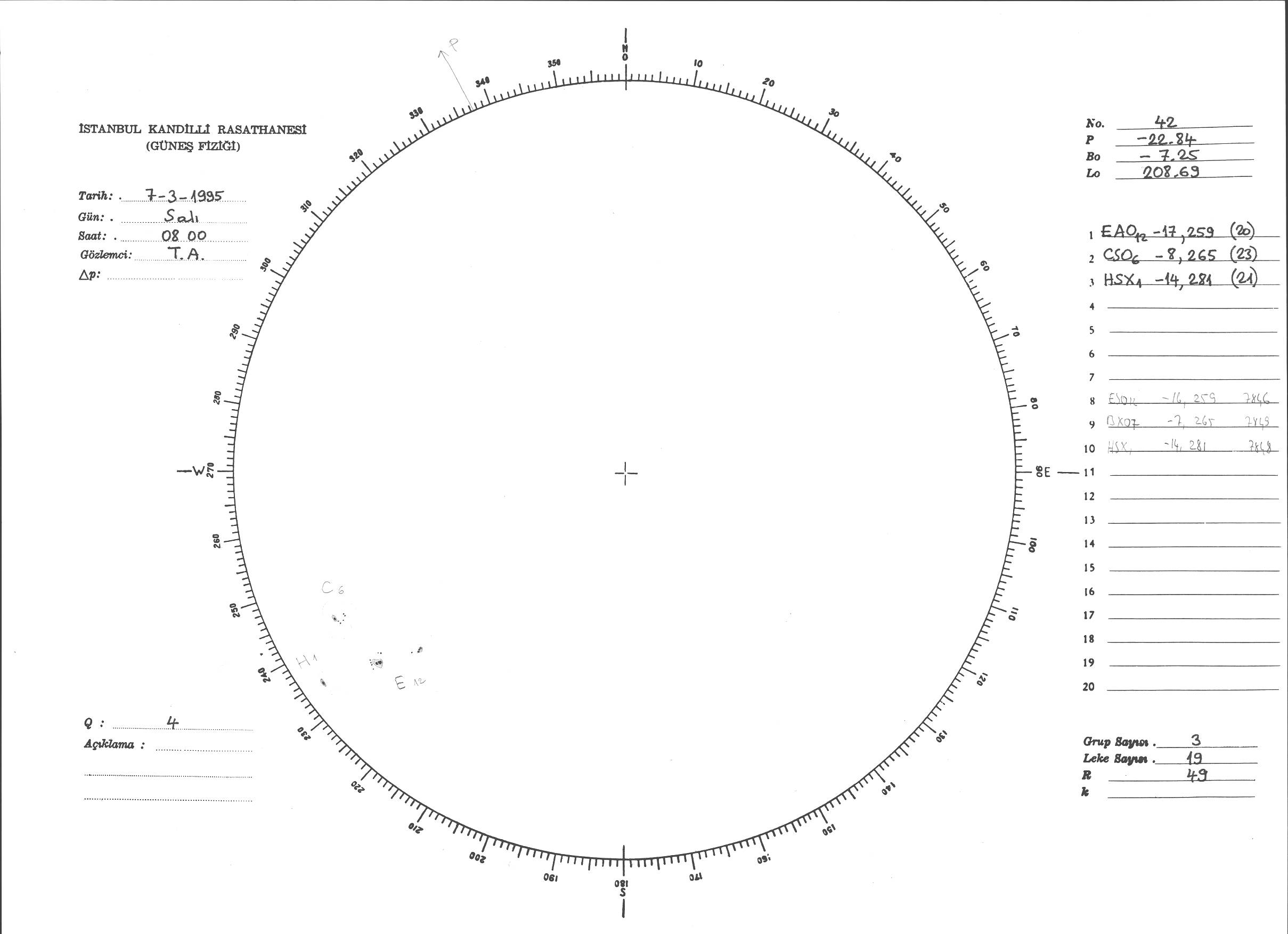 Güneş Lekesi Çizimi - 07.03.1995