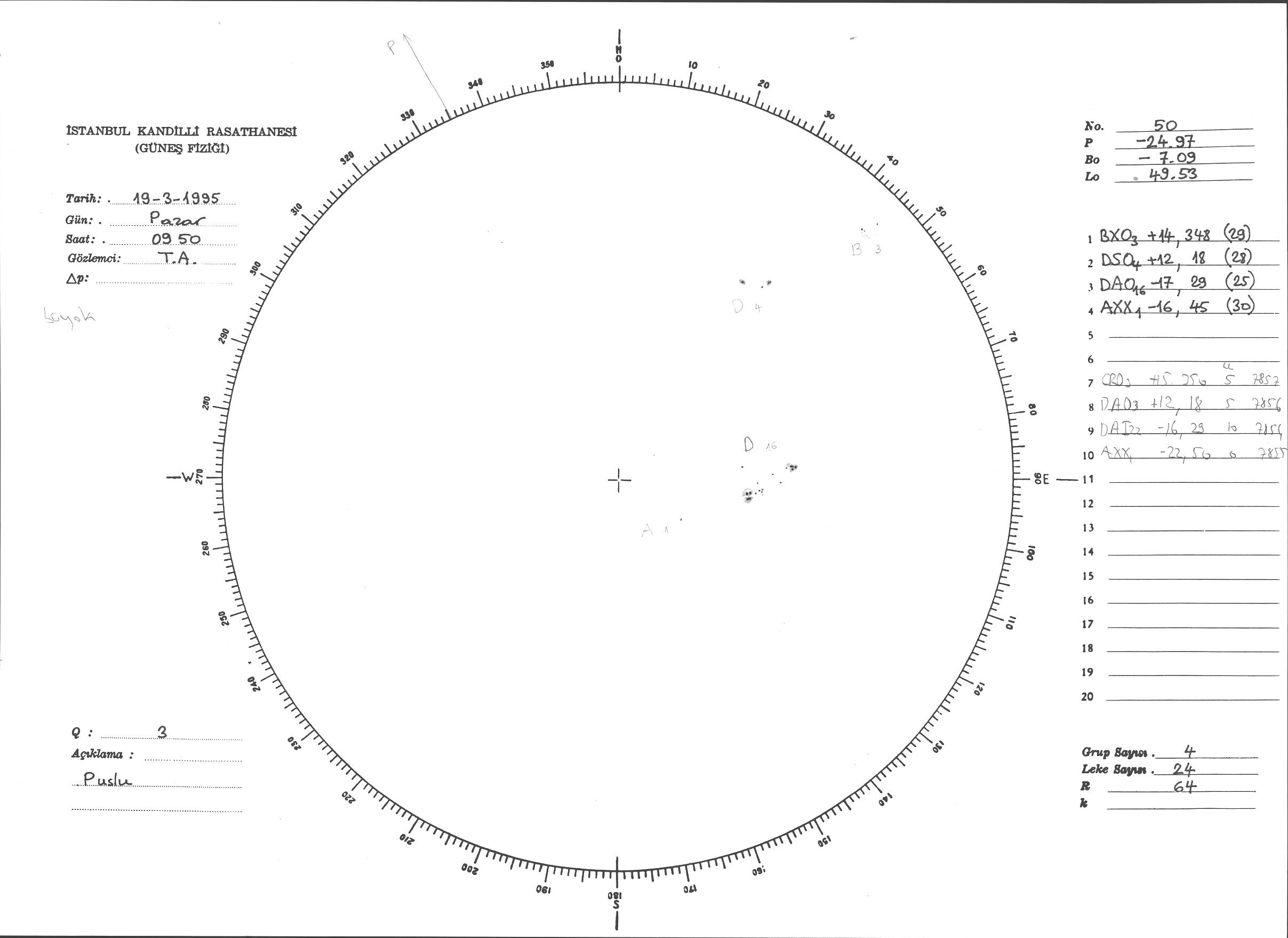 Güneş Lekesi Çizimi - 19.03.1995