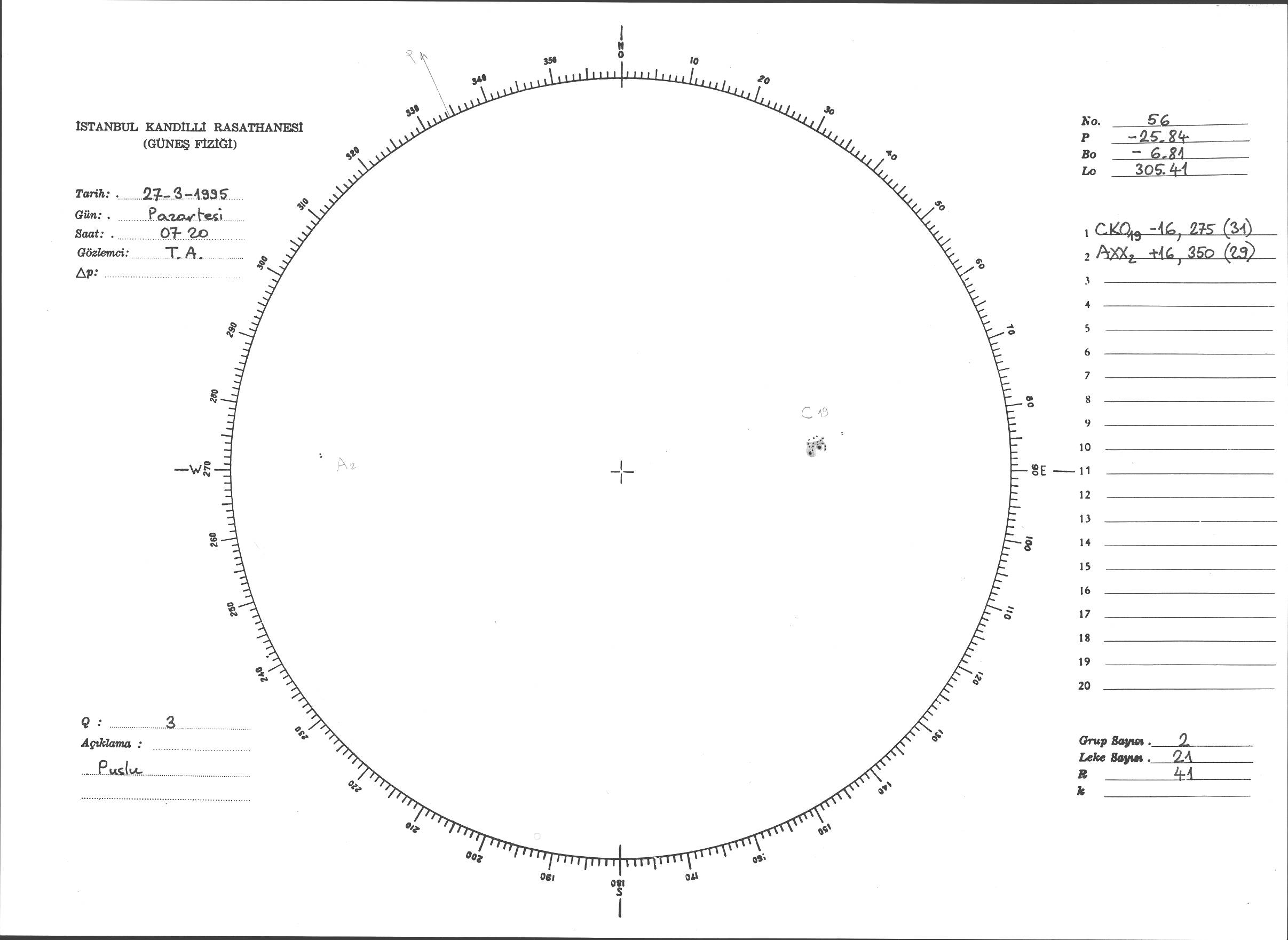 Güneş Lekesi Çizimi - 27.03.1995