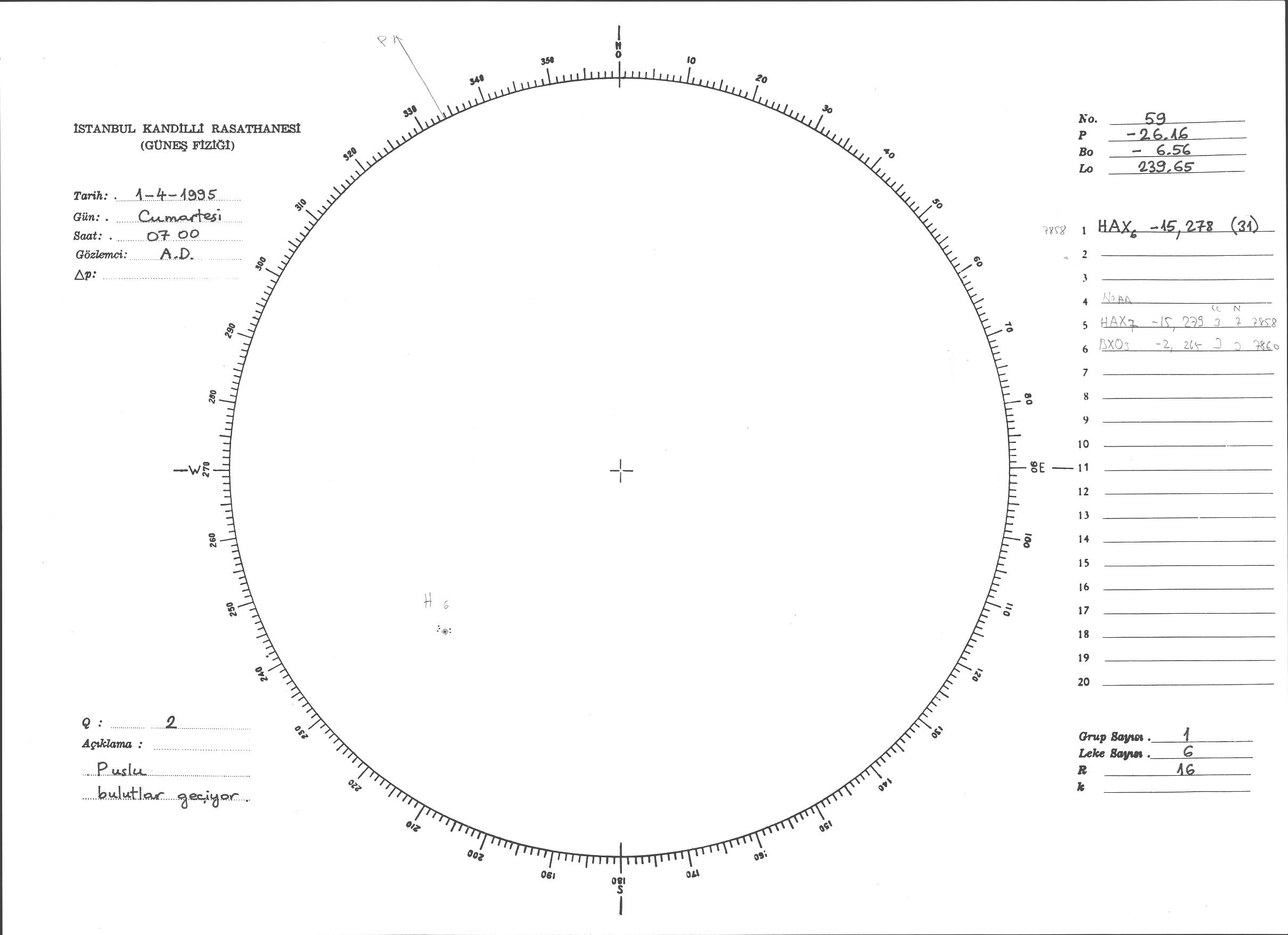 Güneş Lekesi Çizimi - 01.04.1995