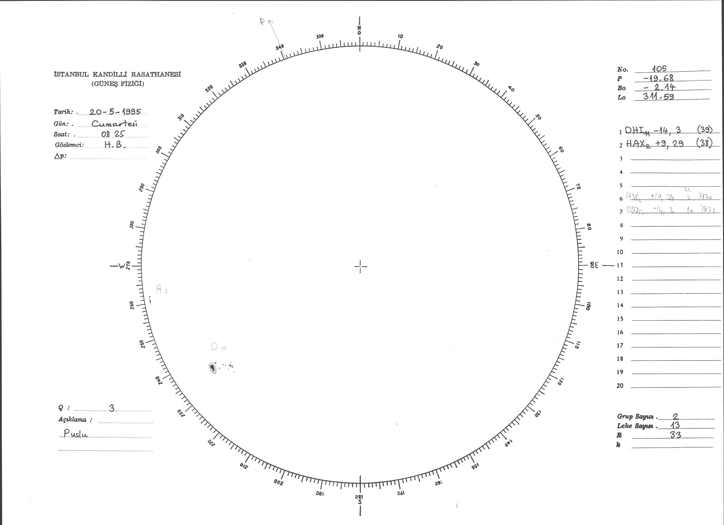 Güneş Lekesi Çizimi - 20.05.1995