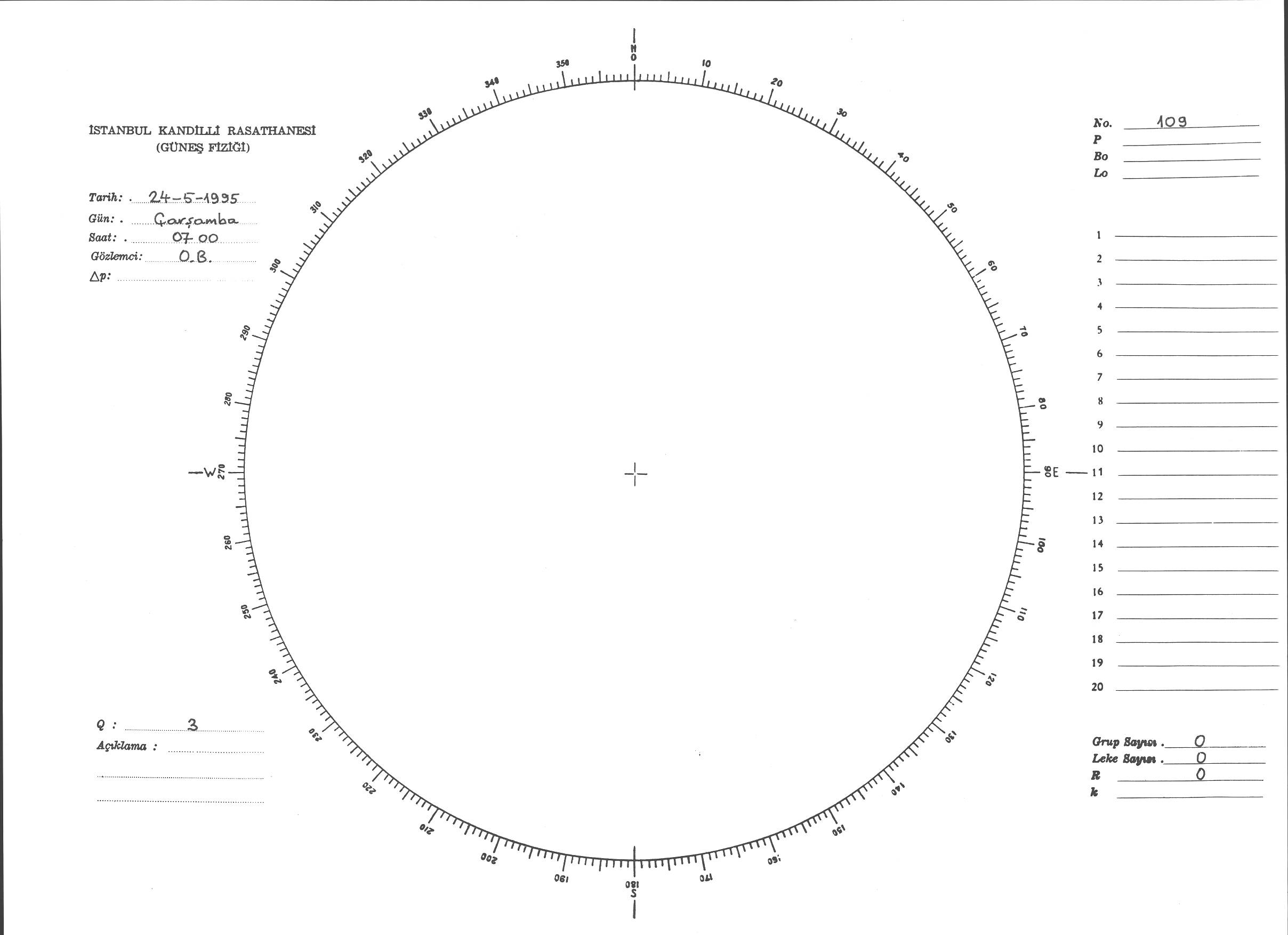 Güneş Lekesi Çizimi - 24.05.1995