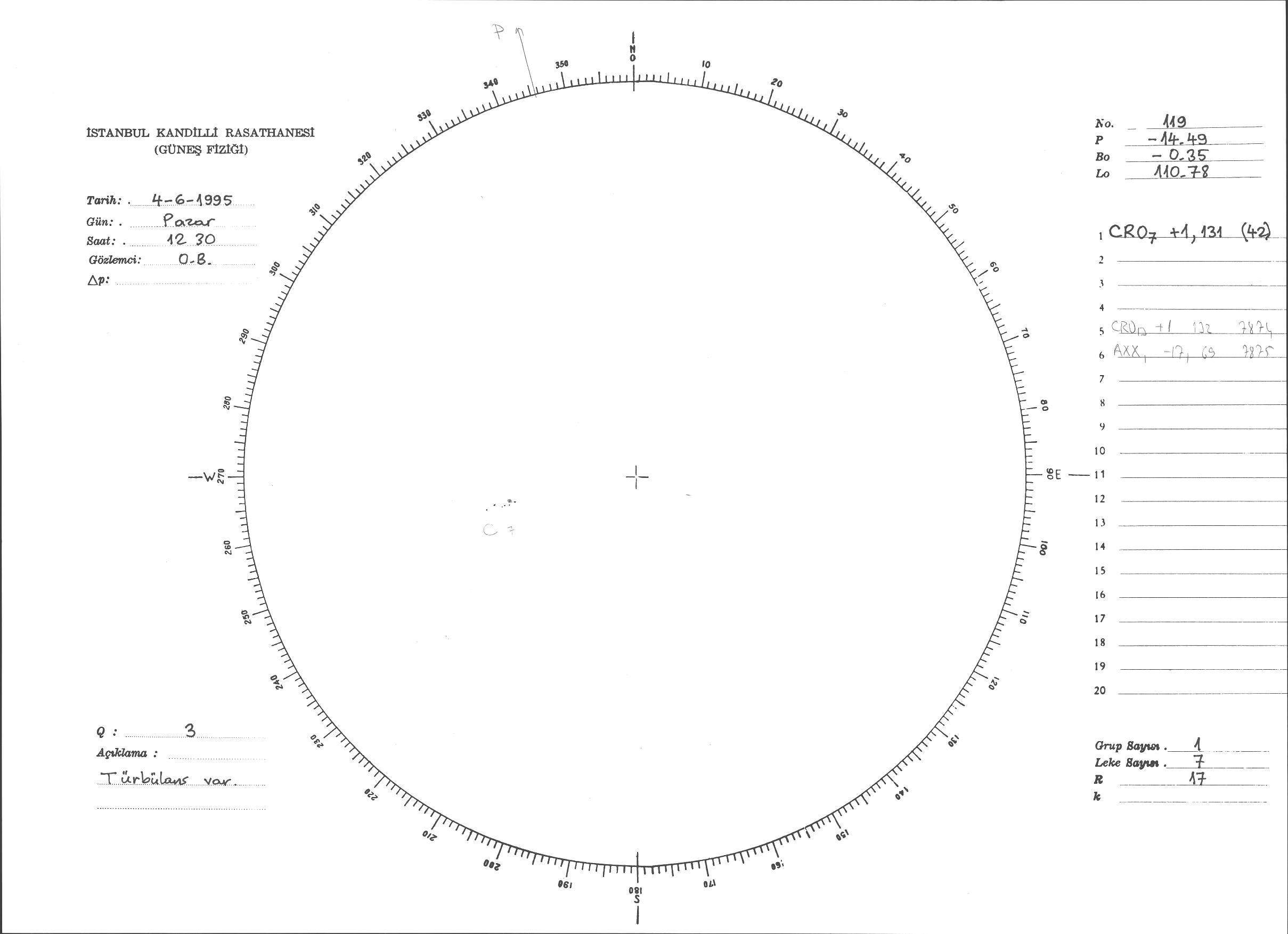 Güneş Lekesi Çizimi - 04.06.1995
