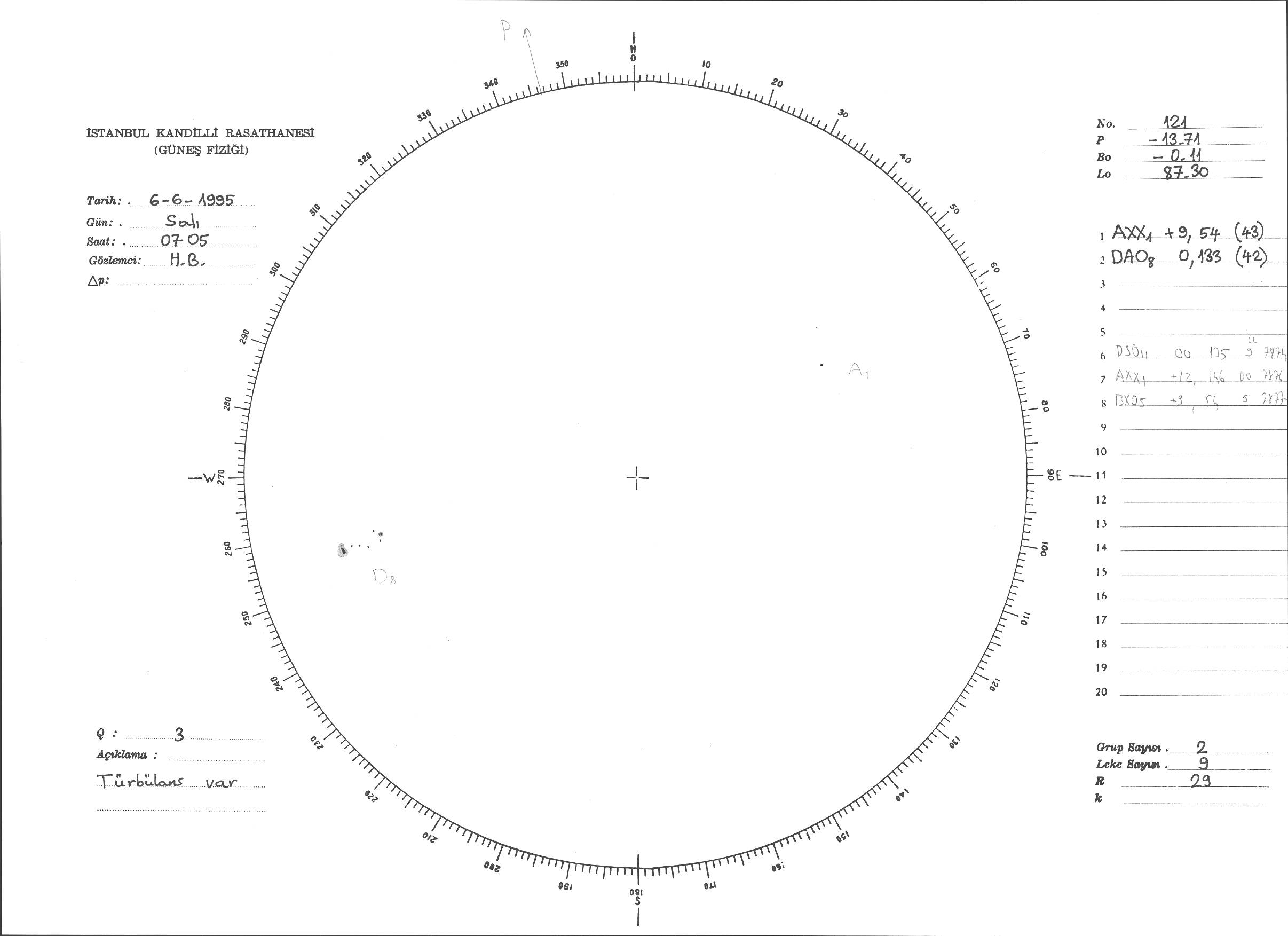 Güneş Lekesi Çizimi - 06.06.1995