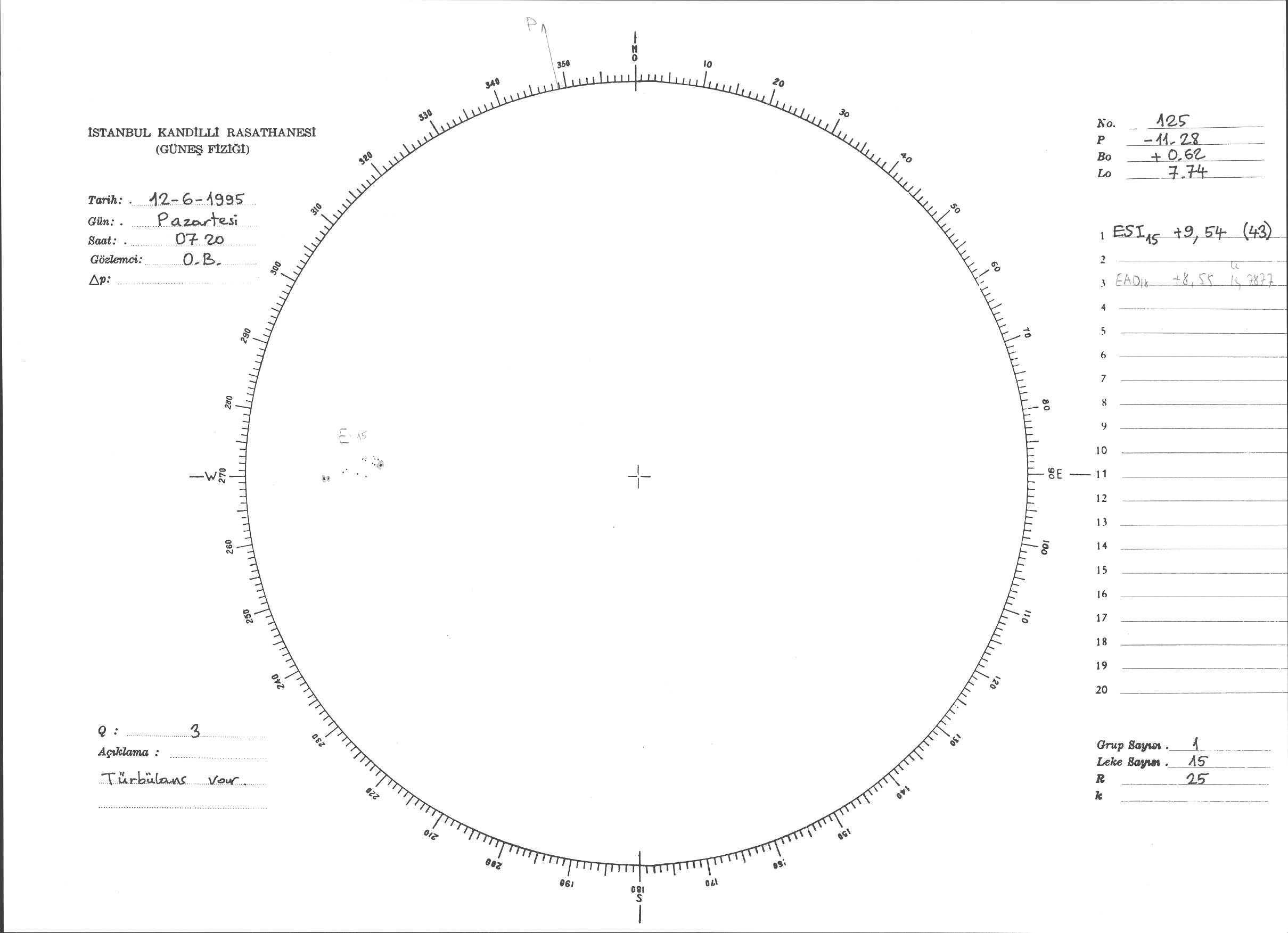 Güneş Lekesi Çizimi - 12.06.1995