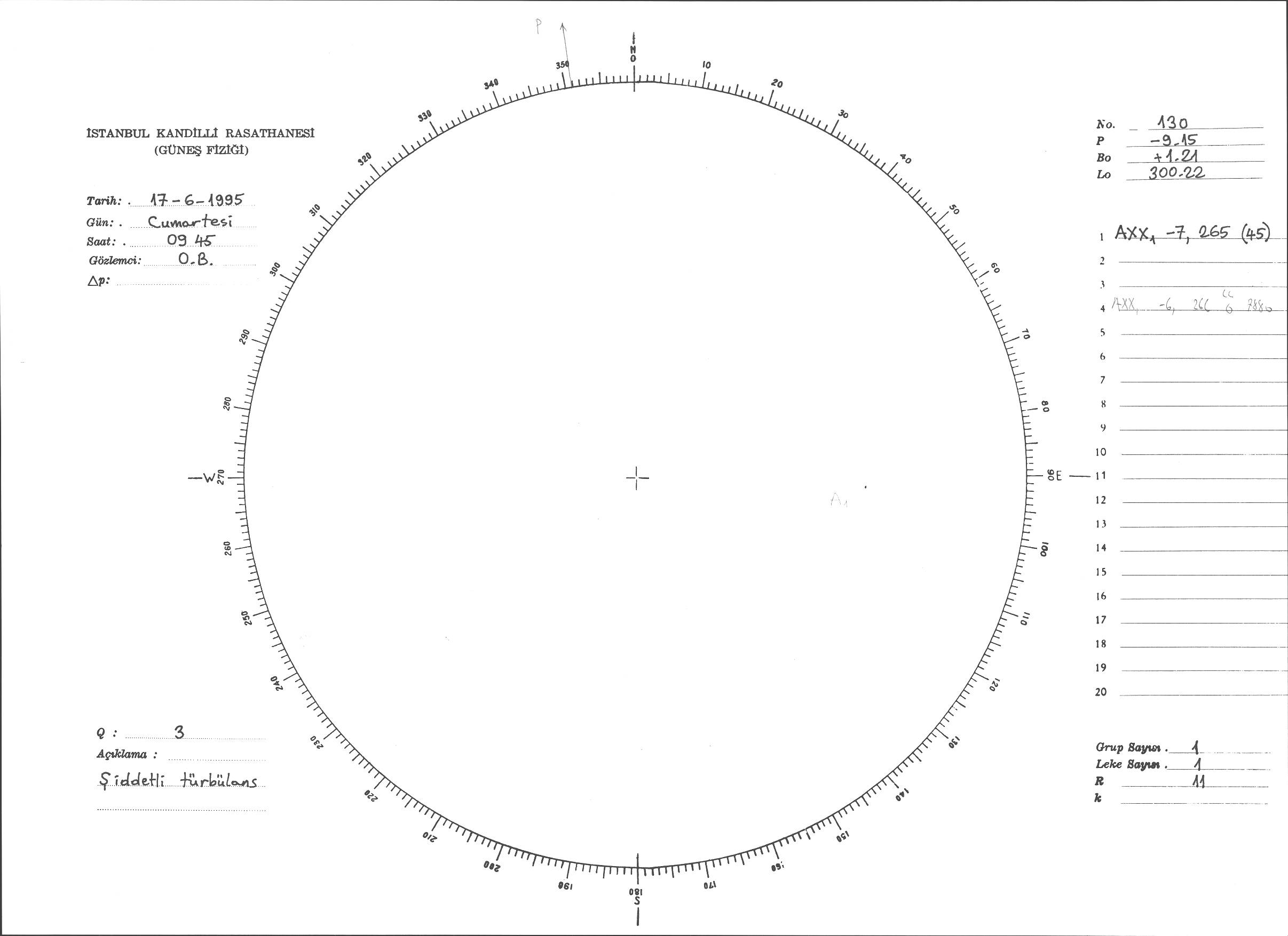 Güneş Lekesi Çizimi - 17.06.1995