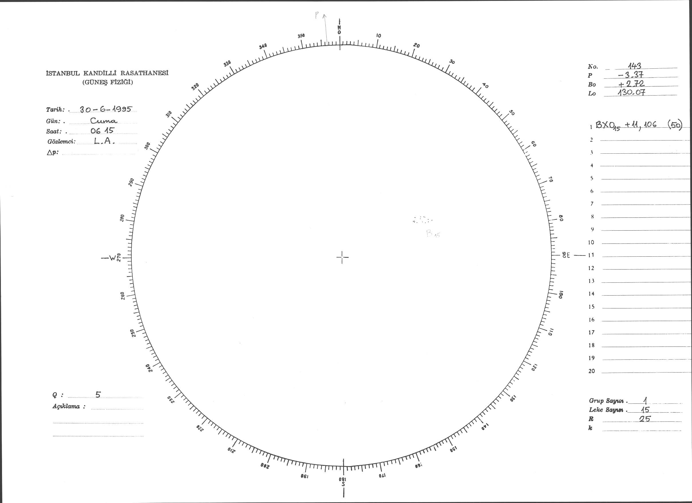 Güneş Lekesi Çizimi - 30.06.1995