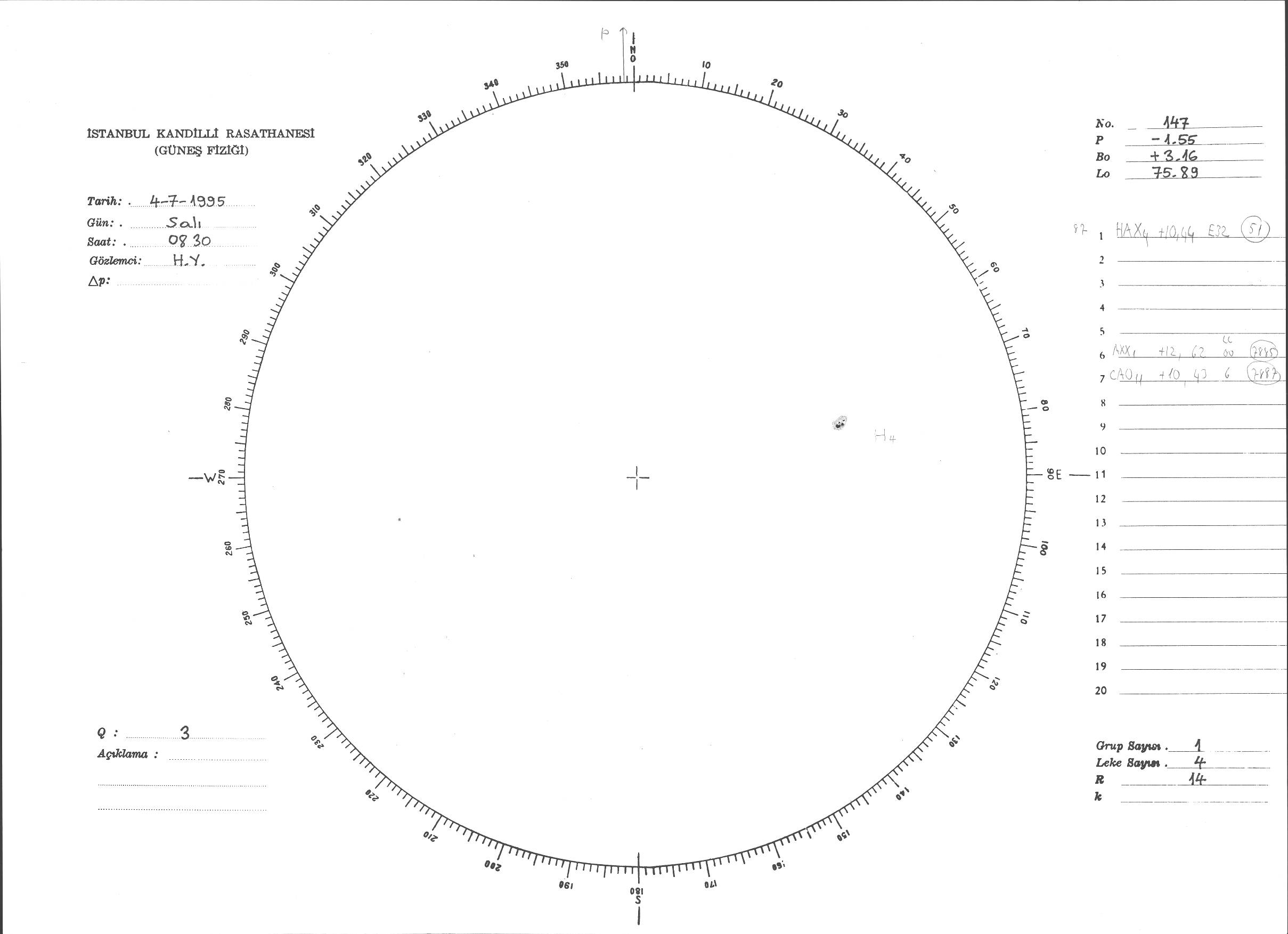 Güneş Lekesi Çizimi - 04.07.1995
