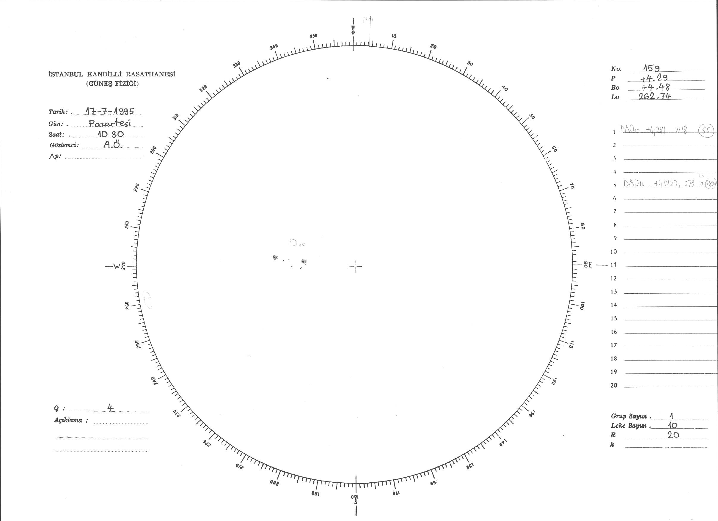 Güneş Lekesi Çizimi - 17.07.1995