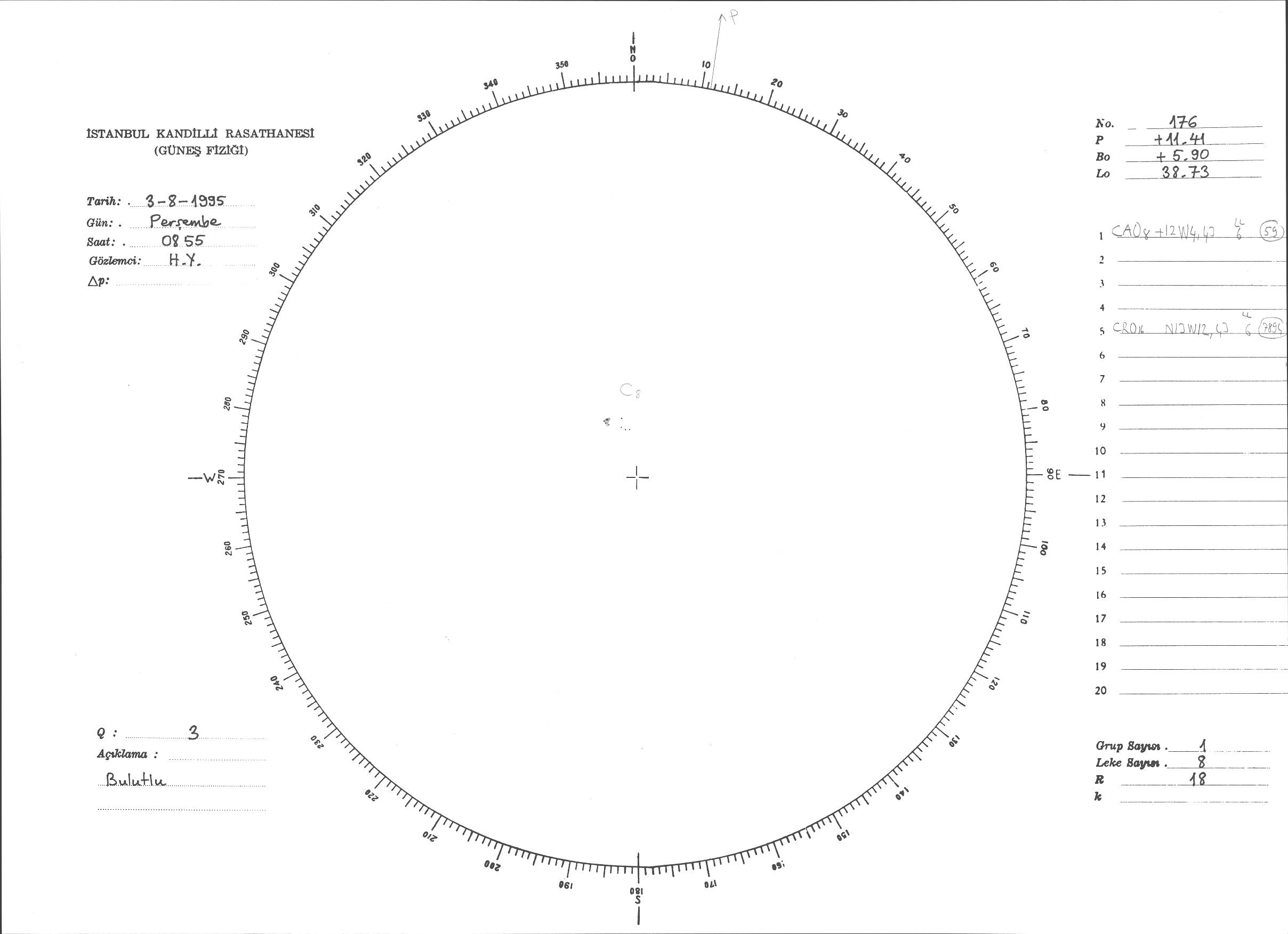 Güneş Lekesi Çizimi - 03.08.1995