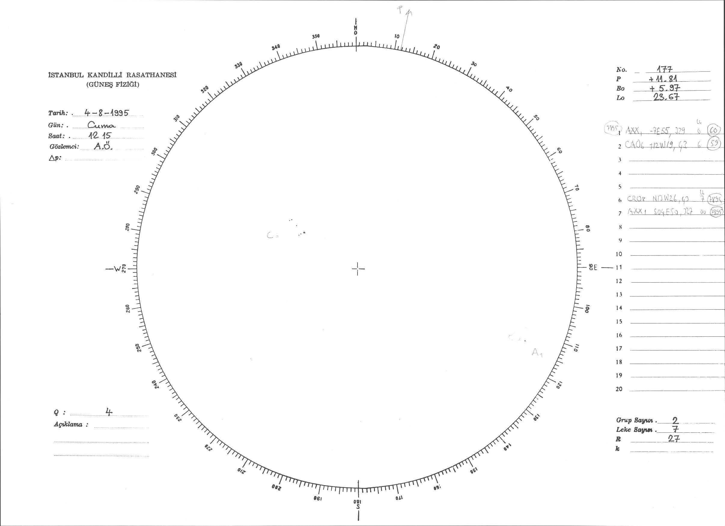 Güneş Lekesi Çizimi - 04.08.1995