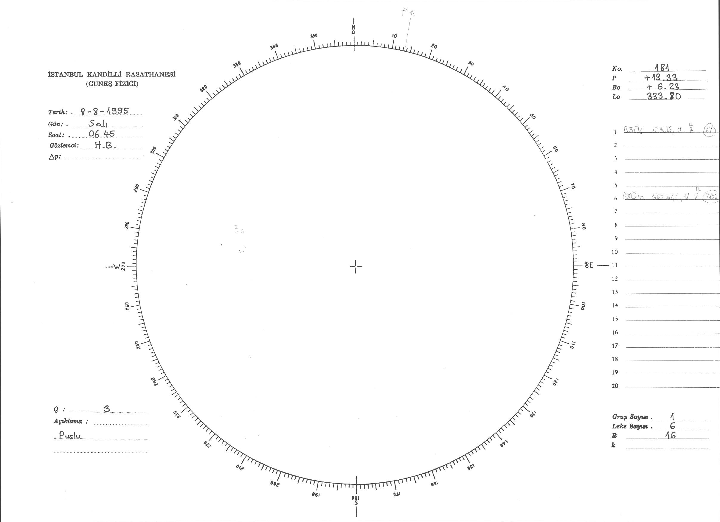 Güneş Lekesi Çizimi - 08.08.1995