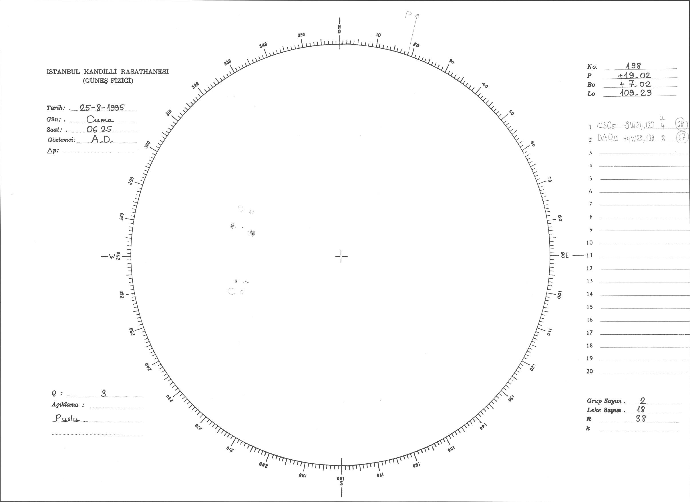 Güneş Lekesi Çizimi - 25.08.1995