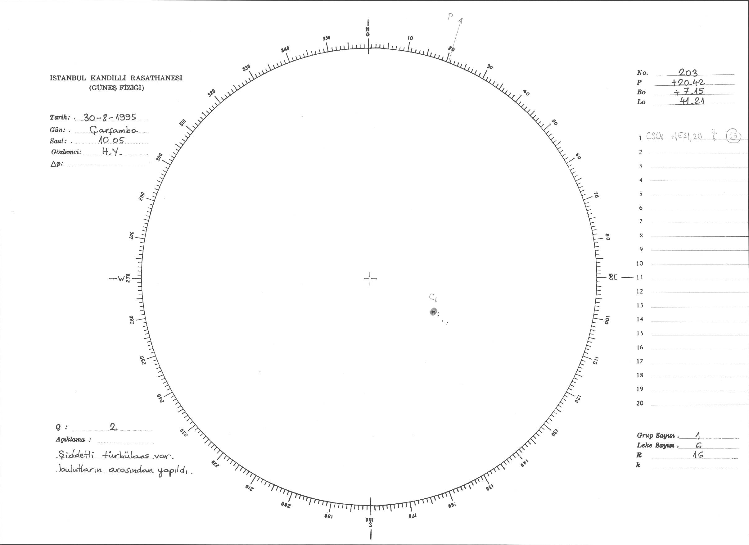 Güneş Lekesi Çizimi - 30.08.1995