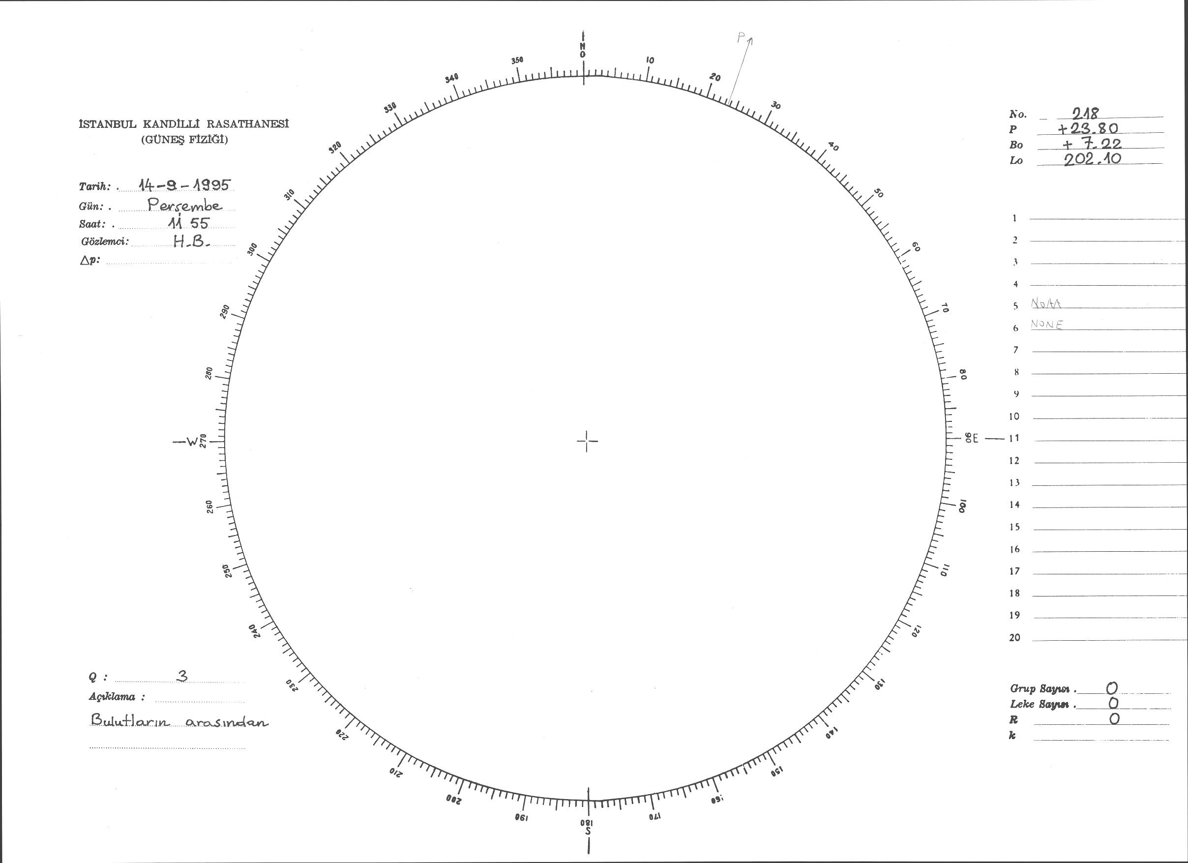 Güneş Lekesi Çizimi - 14.09.1995